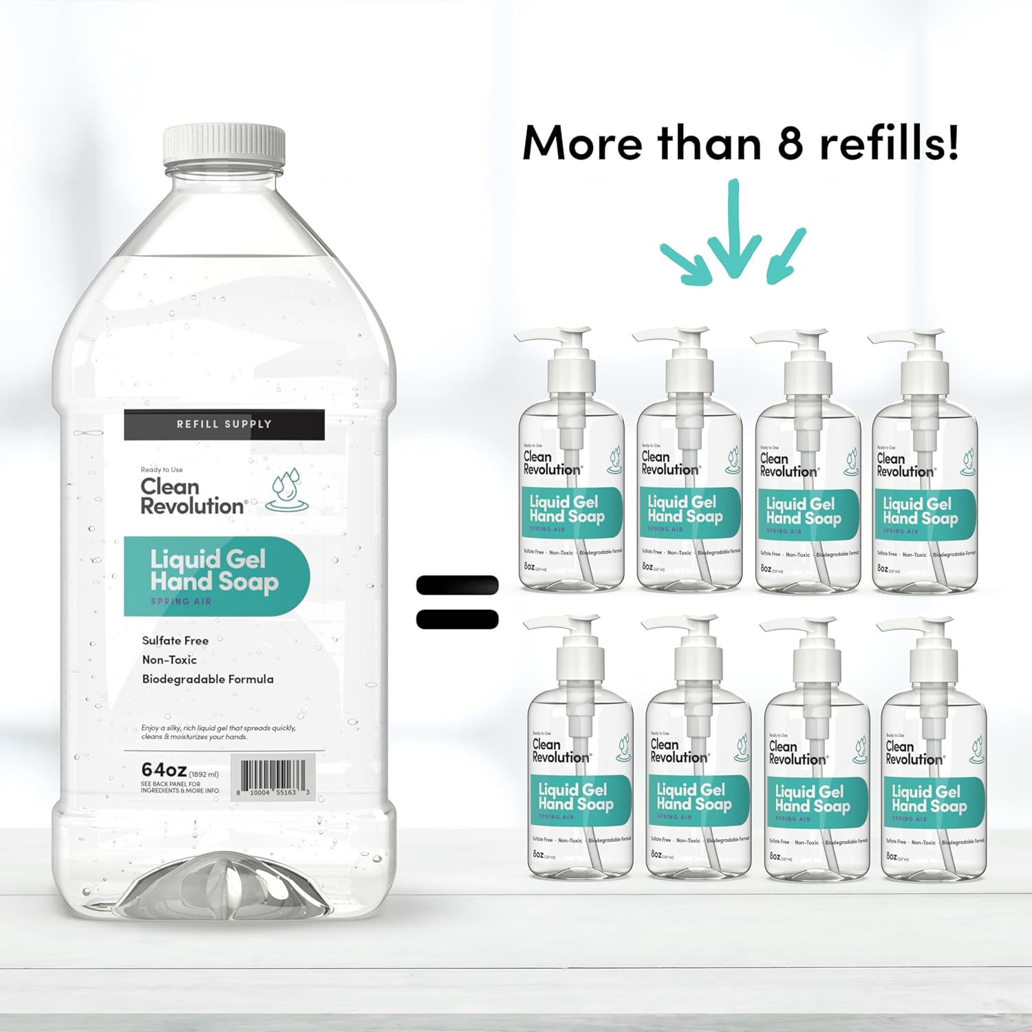 Clean Revolution Liquid Gel Hand Soap, Silky Rich Liquid, Quick Lather, Fast Rinsing, Contains Real Essential Oils (Spring Air) 64 Fl Oz