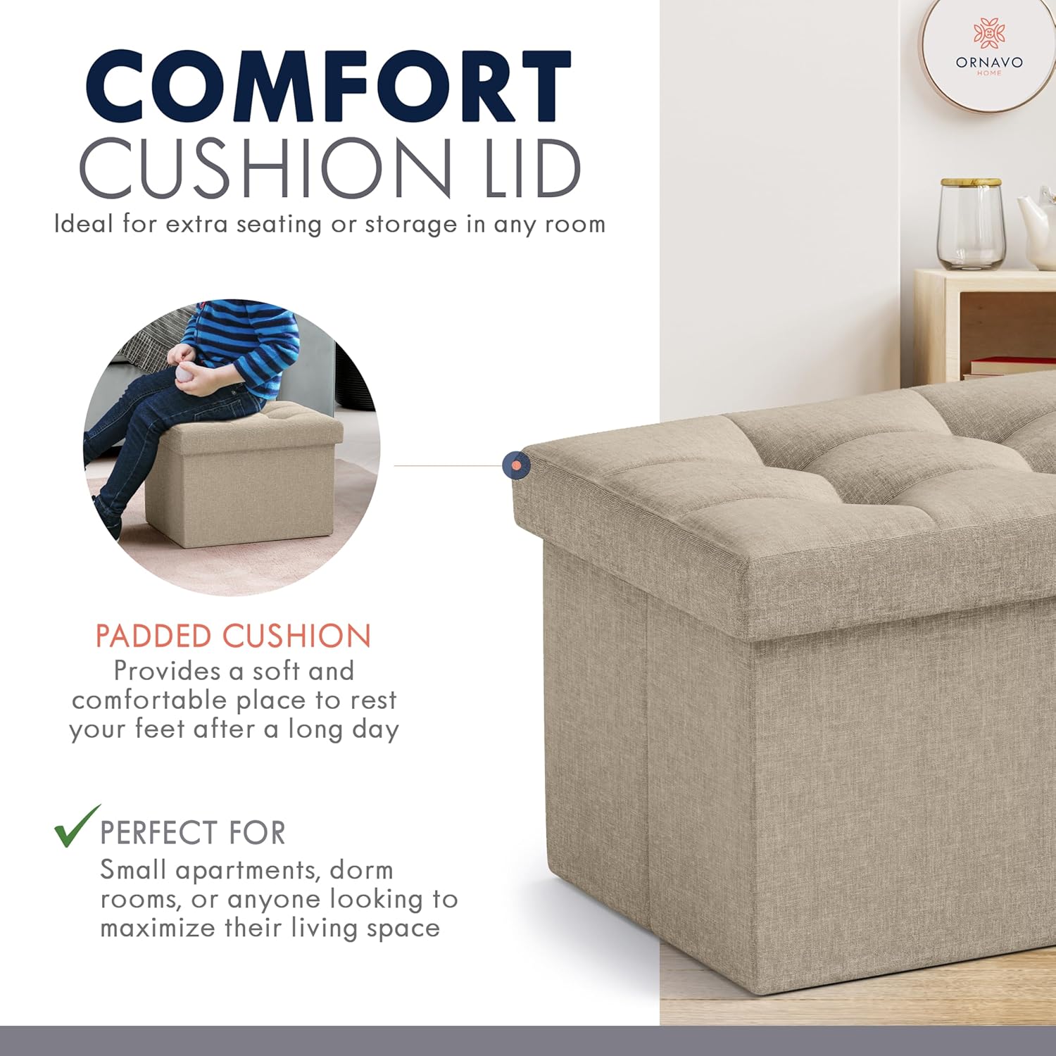 - COMFORT - Its padded cushion provides a soft and comfortable place to rest your feet after a long day. It also doubles as extra seating for guests, making it a versatile addition to your home.