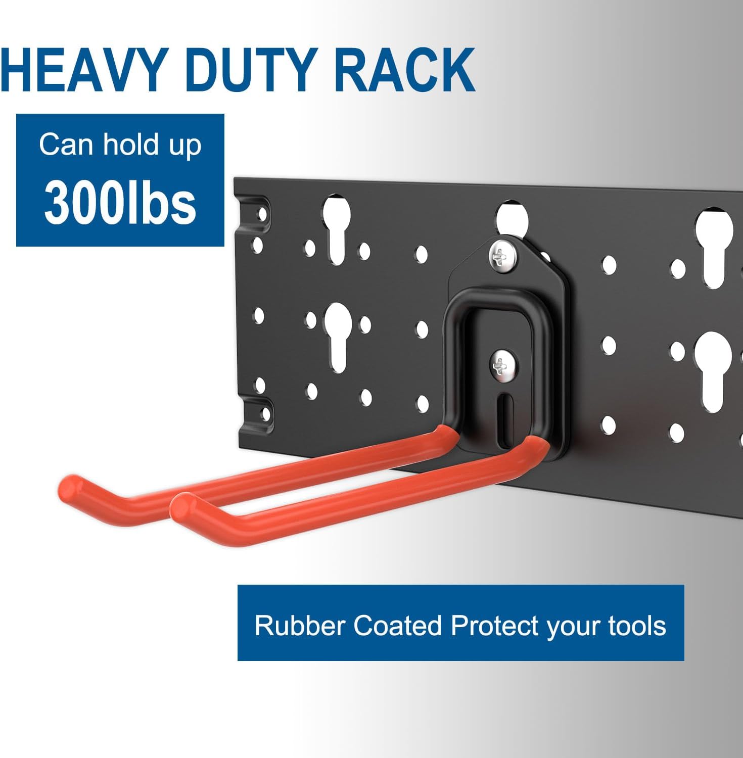 - MULTI-FUNCTIONAL STORAGE: Elevate your organization game with our garage storage system with enhanced versatility. Lock it onto the rail for tool storage, detach for wall installation, or convert it into shelf hooks for added options.