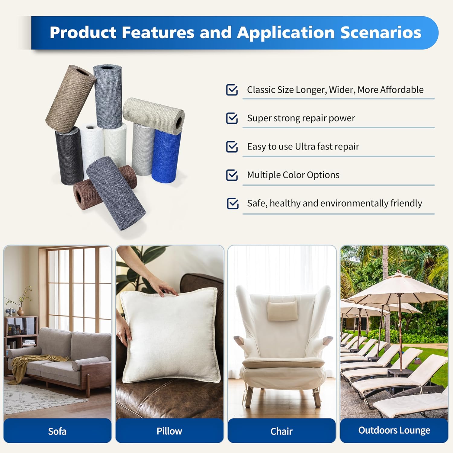 - Soft Fabric Repair Tape: Classic size 4" x 63", economical and practical, made of pure cotton linen repair tape, with a smooth and soft surface, comfortable and breathable, scratch-resistant and durable, it does not fade after long-term use, providing the comfort you desire while completing the repair.