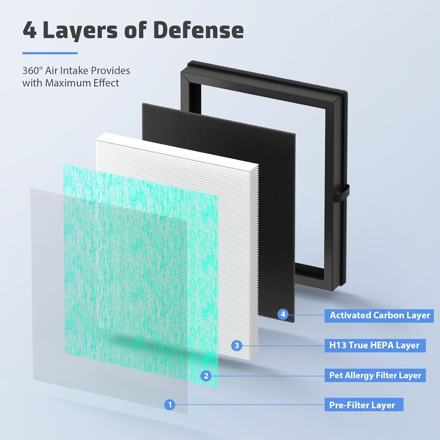- 【Filtration Performance】High-efficiency filtration layer improves air quality and promotes your health, can filter airborne such as smoke pollen dander hair smell.
