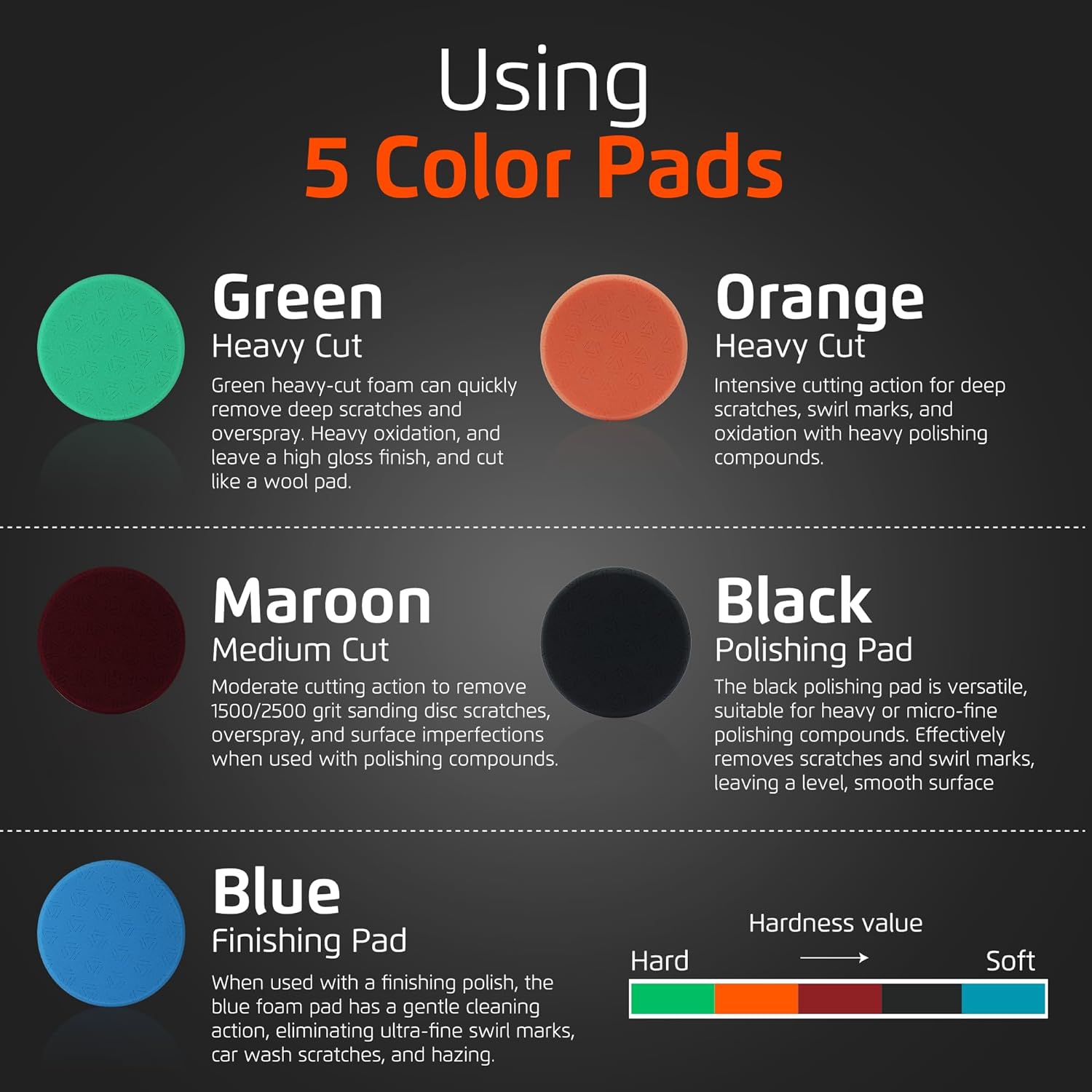 - 🌟【Innovative Design for Efficiency】: Circular-shape with Unique Triangular grooves foam pads provide superior surface contact, reducing heat buildup. Achieve smoother and more effective polishing compared to traditional pad shapes.