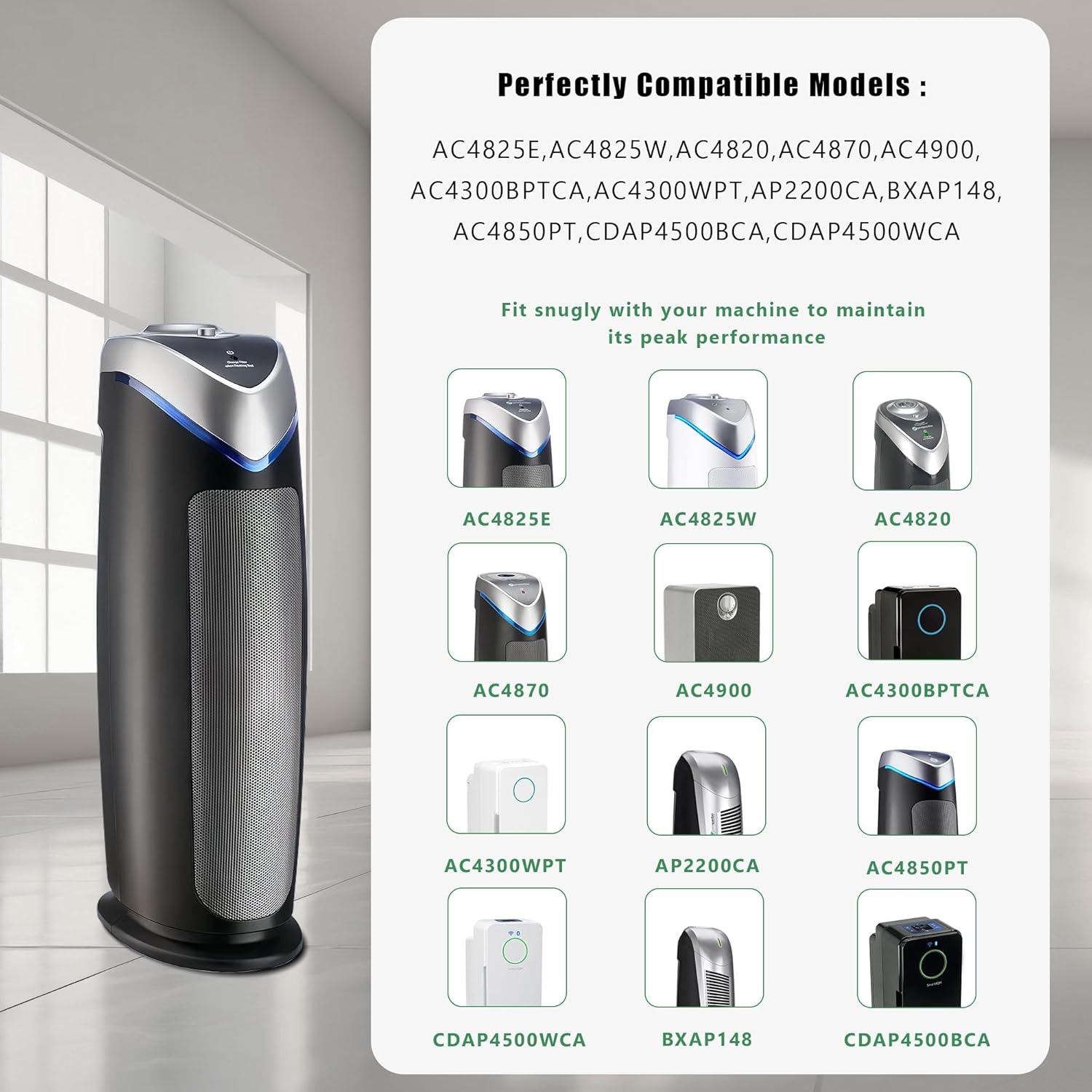 4 Packs FLT4850PT FLT4825 HEPA Filter b Replacement Pet Compatible with AC4825 AC4825E AC4825W AC4300 AC4800 AC4900 AC4850 Air Cleaner Purifier with 8 activated carbon pre-filters