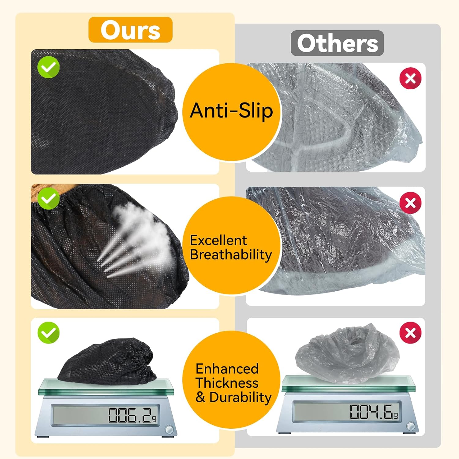 - 【Durable Non-Woven Fabric】Crafted from high-quality non-woven fabric, these shoe covers disposable non slip boast excellent breathability and resilience. They are thicker and more durable than plastic alternatives, ensuring repeated use without wear and tear.