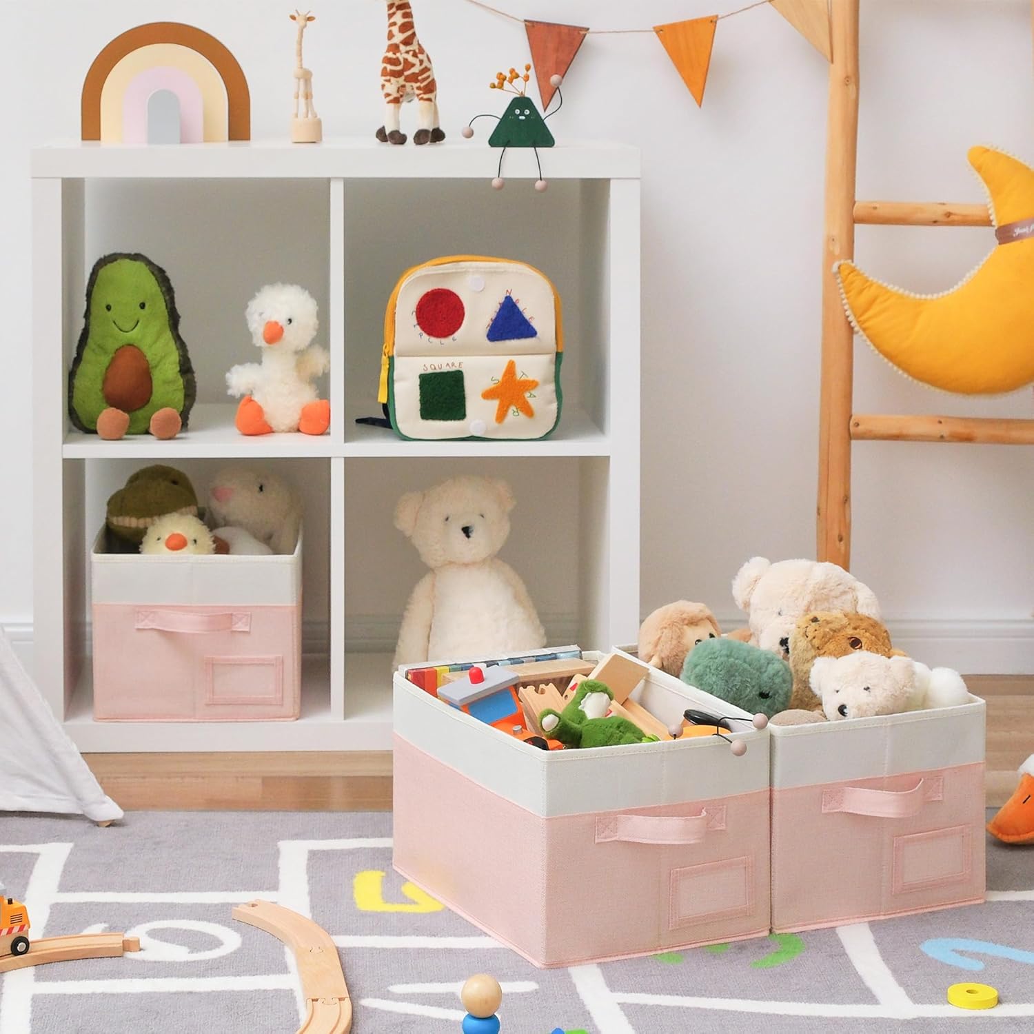 GRANNY SAYS Storage Baskets for Organizing, Fabric Storage Bins for Shelves, Closet Storage Boxs, Clothing Storage and Organization, Decorative Storage Bins, Pink&Ivory, Large, 3-Pack