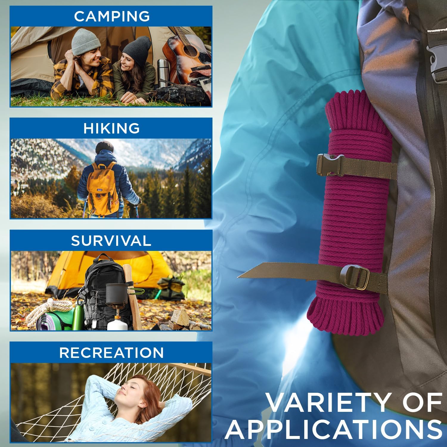 - COTTON ROPE: Color: Deep Pink. Length: 100 feet. Width: 3/16 inch (5 mm). Quick-drying. All-purpose. Made from natural cotton with synthetic core. * Please note: the rope is not suitable to be used for wicks.