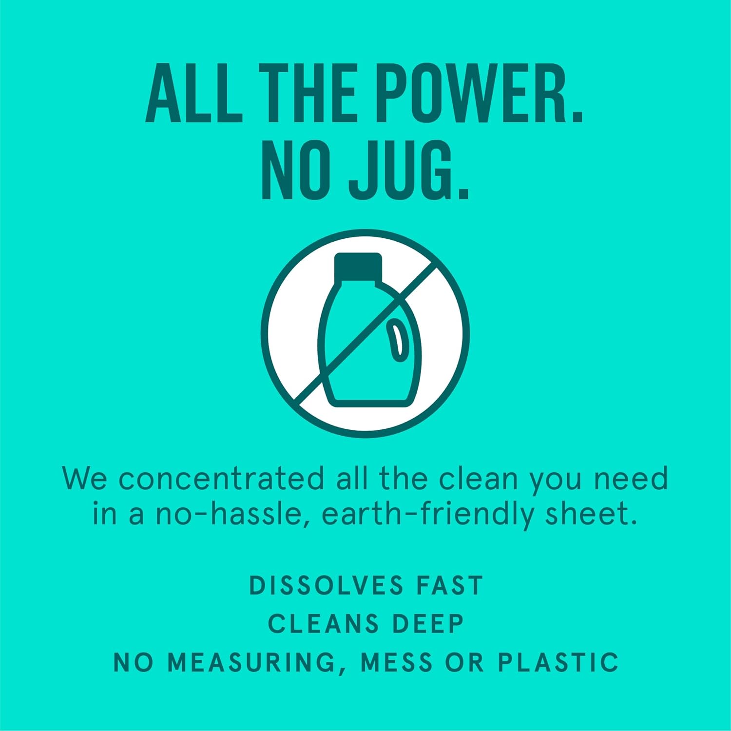 - POWERFUL LAUNDRY SHEETS provide up to 120 loads of clean laundry without messy detergent pods or powder laundry detergent. No measuring, pouring, or spilling. No plastic jug, zero waste.