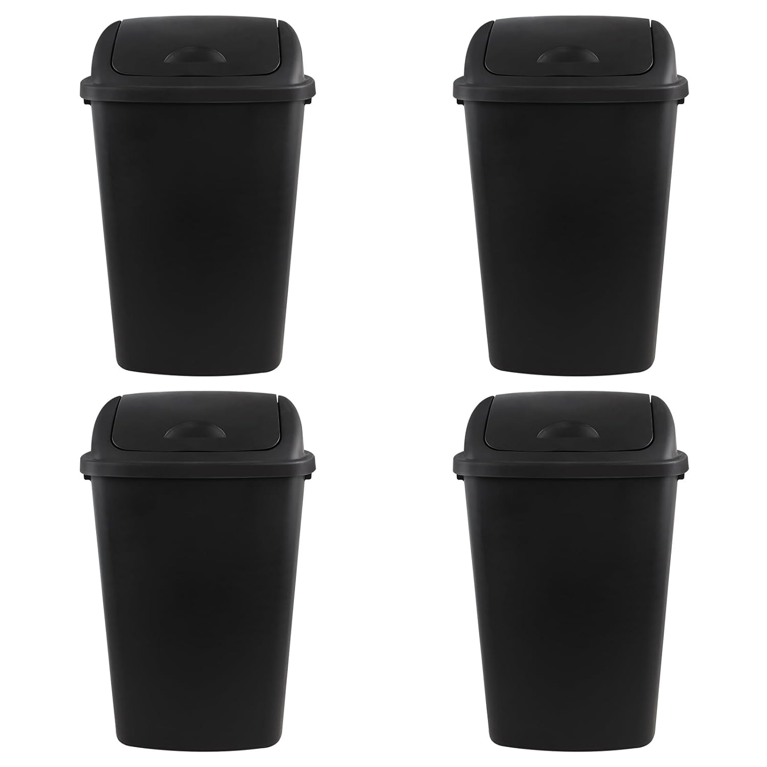Zopnny 4-Pack Lidded Trash Can, 13 Gallon Black Plastic Garbage Bin with Lid for Office, Bedroom, Bathroom