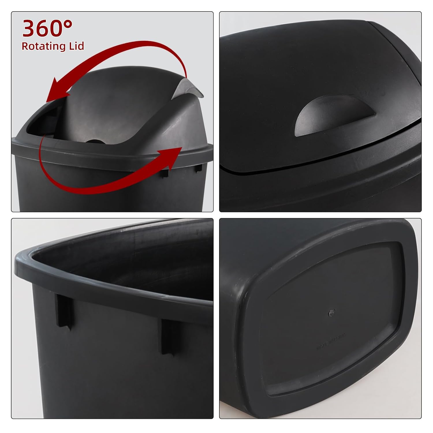 - The design of the shake cover allows for one handed disposal of garbage, with a smooth surface that is easy to clean. The ergonomic handles on both sides can be lifted and moved, saving effort. The thick bottom can bear enough weight