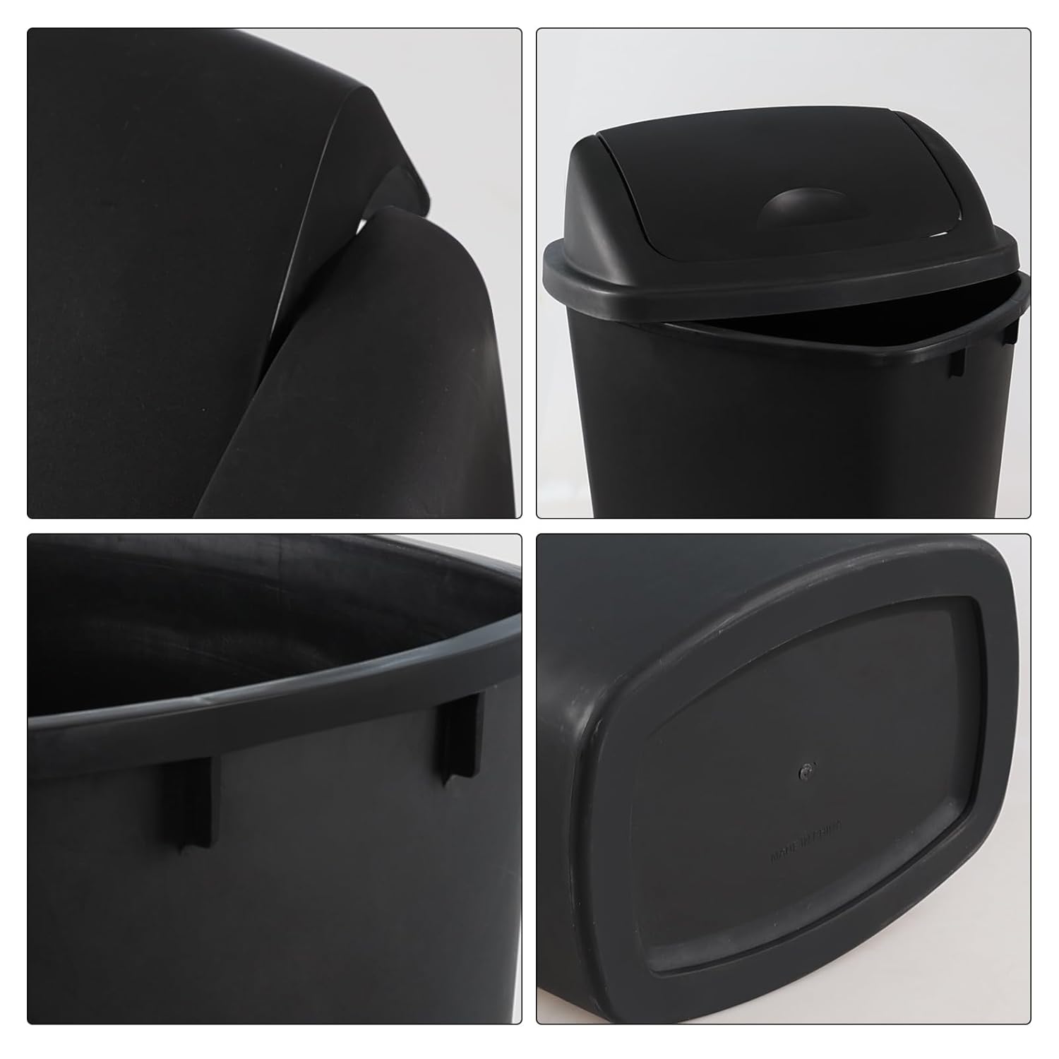 Zopnny 4-Pack 11 Gallon Swing Lid Trash Can, Plastic Swing-Top Garbage Can, Black