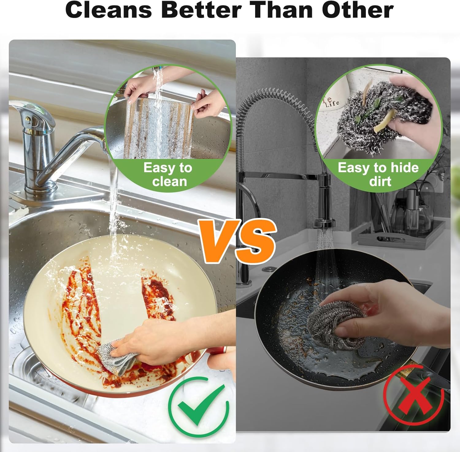 - Powerful Stain Removal & No Scratch---Our anti-scratch cleaning rags are made of soft wire material, which not only provide powerful stain removal capabilities, but also ensure that they will not scratch or damage cookware and countertops. The silver surface is suitable for cleaning dirty pots and greasy stoves.