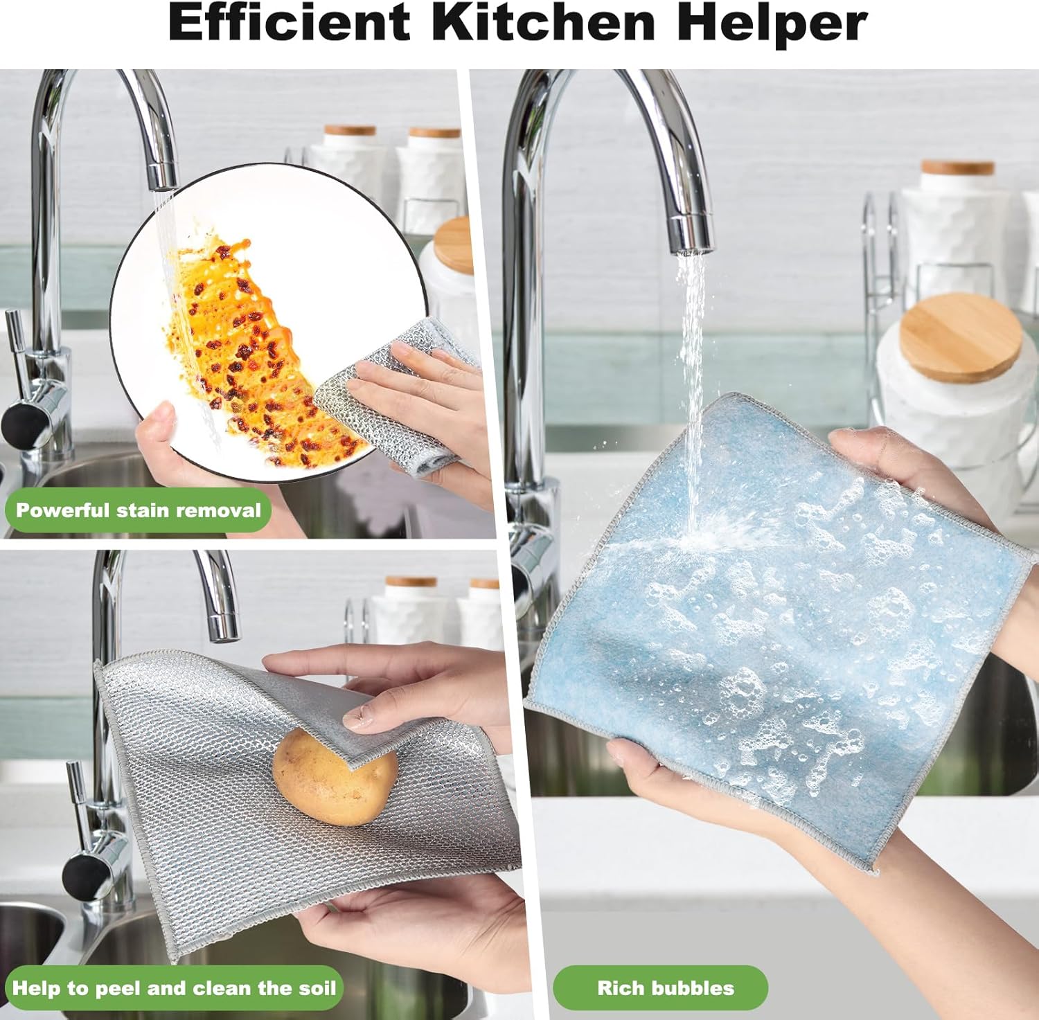 - Double-Sided Design:Jeymei wire dishwashing rag features a double-sided design, made of high-quality materials and precision stitching. Our multipurpose wire miracle cleaning cloths can be used wet or dry to easily clean surfaces like sinks, stoves, and countertops.
