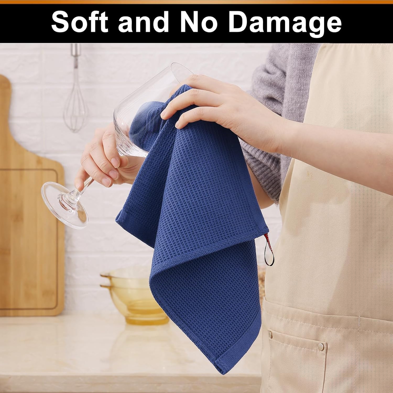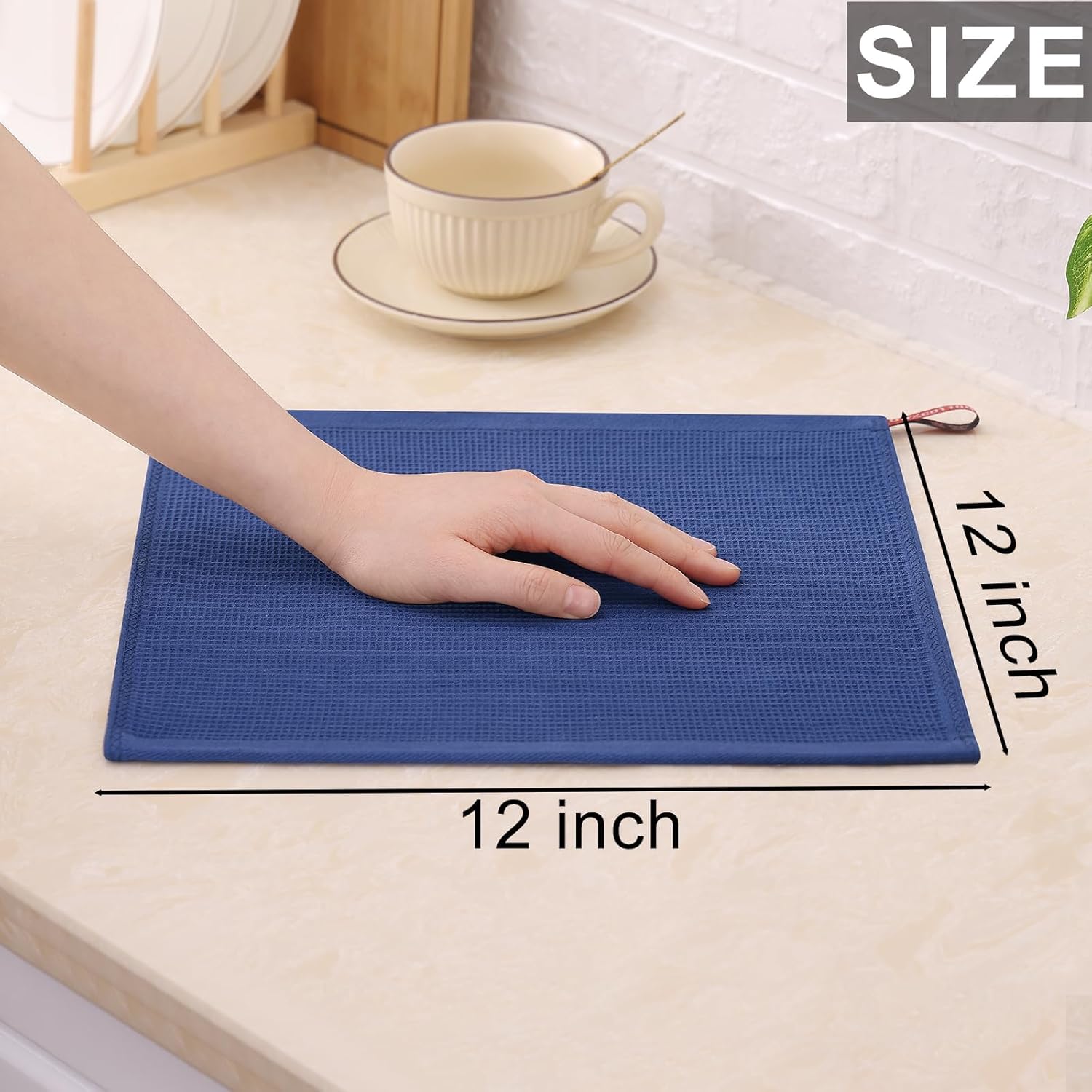 Homaxy 100% Cotton Waffle Weave Dish Cloths - 12 Pack Soft and Absorbent Dish Towels - 12 x 12 Inches Quick Dry Dish Rags - Navy Blue