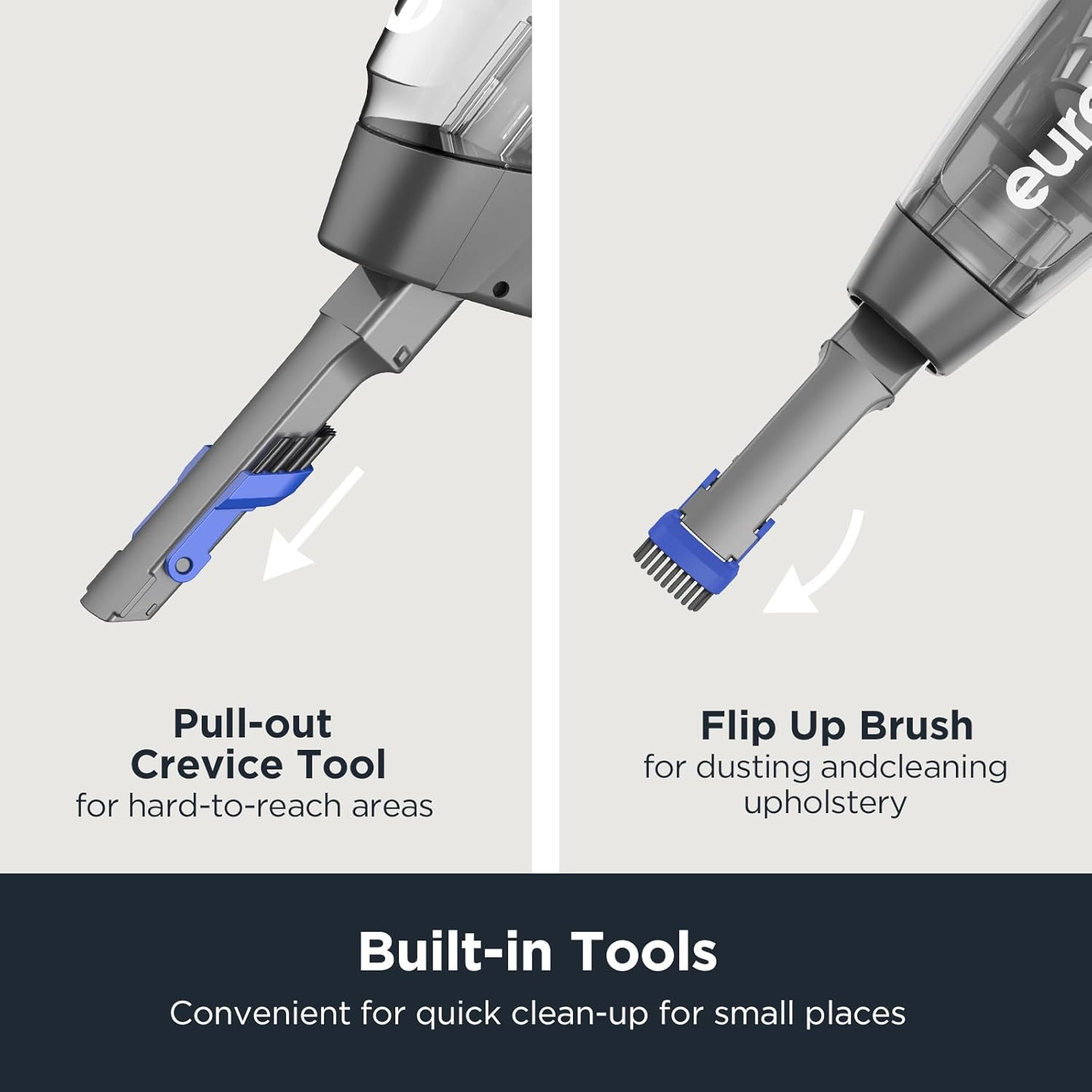 - Versatile Cleaning: Eureka NES312 small stick vacuum tackles stair crevices, car interiors, and above-cabinet spaces with its ultra-lightweight body (4.4 lbs). Eureka focuses on lightweight cleaning technology, saving 50% of effort in daily cleaning.