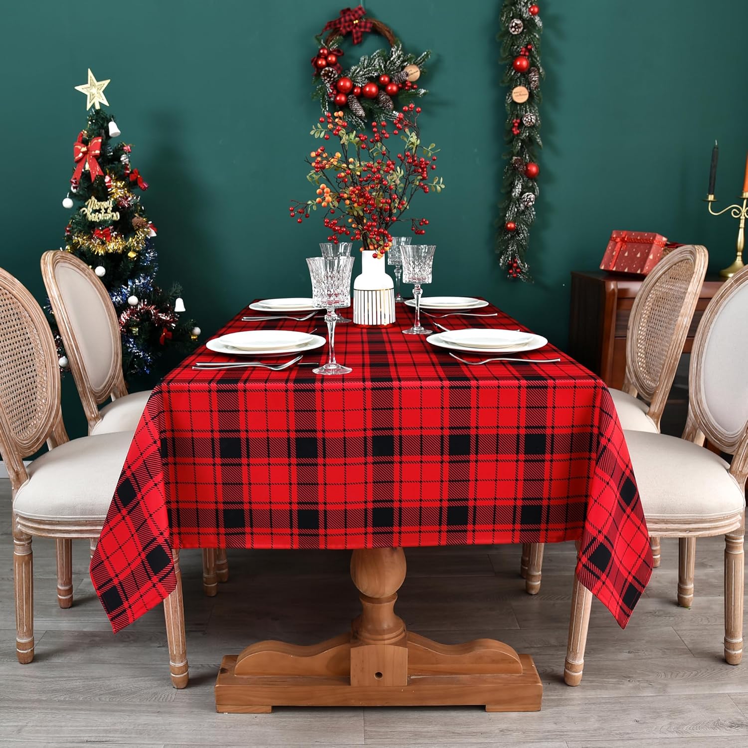 Red Gingham Christmas Plaid Tablecloth - Rectangular 58x102 Inch Water Resistant Table Cloth for Indoor/Outdoor Use - Holiday Table Cover for Kitchen, Picnics, and Parties
