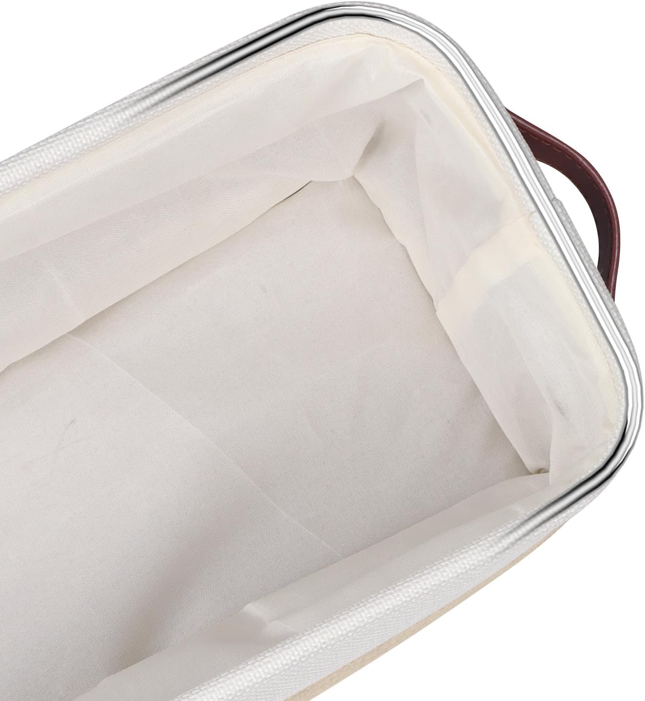 - 【Firmly Upright】 - Sturdy metal support frame and the hard cardboard reinforcement for the bottom.Retain small basket firmly upright.Sides of the handle are reinforced with stitching.The storage basket can easy pull out or in of shelves and closet.