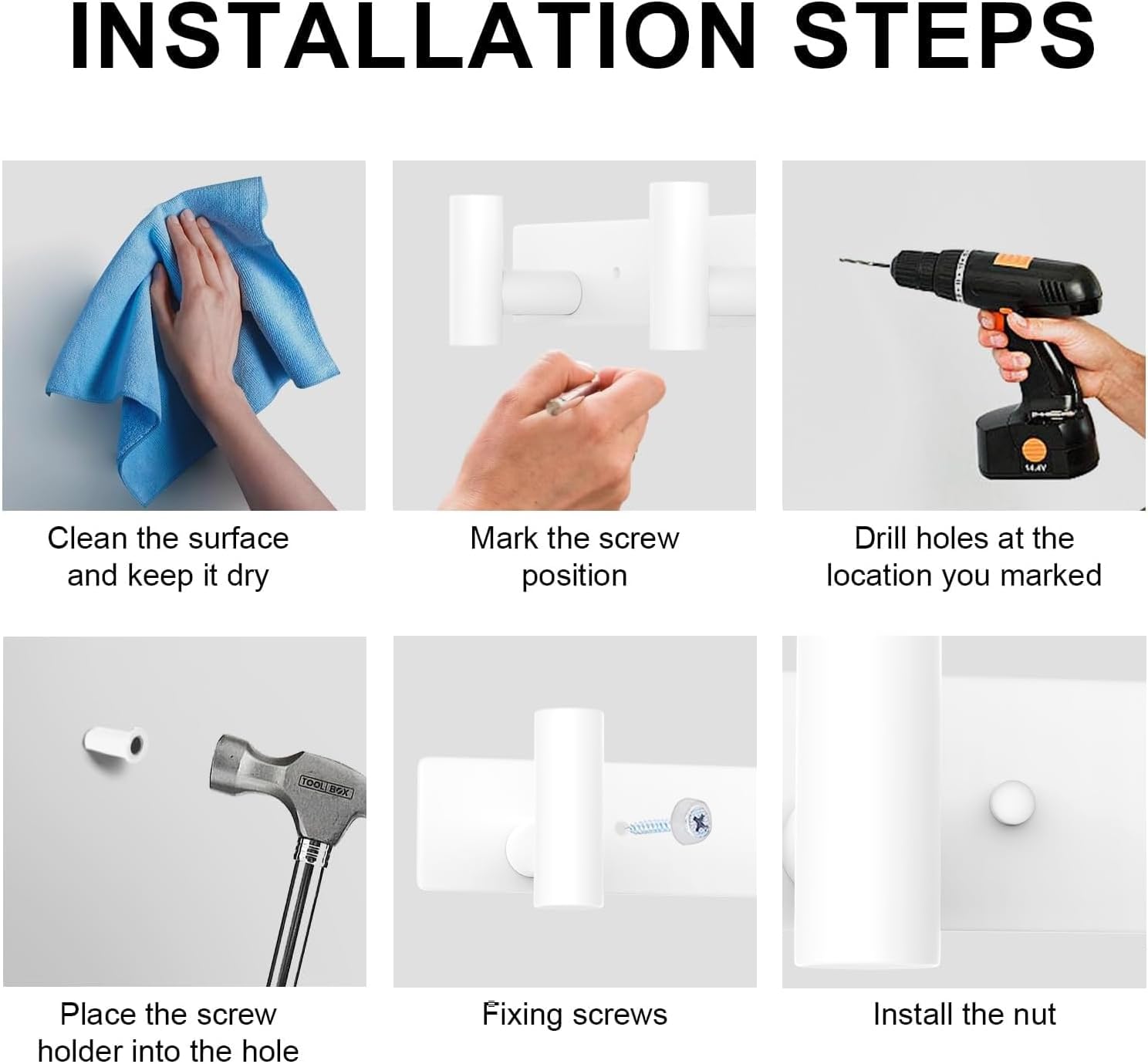 - Versatile Use: This White Row Hook Coat Rack for various locations, including bathrooms, kitchens, living rooms, entrances, and offices. Use it to hang towels, kitchenware, coats, hats, jackets, wallets, keys, and more, adding functionality and organization to your space.
