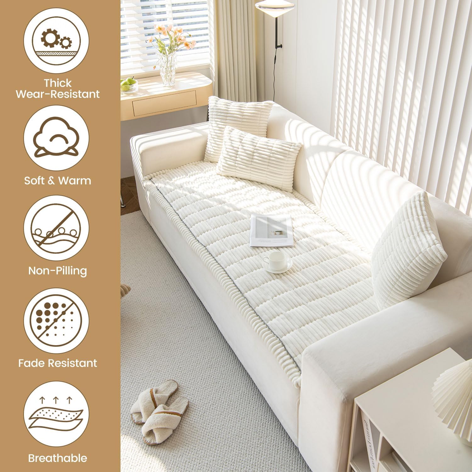 OTOB Couch Covers for Dogs Washable, Non Slip Plush Sofa Cover Kids Pet Friendly Furniture Protector, All Seasons Soft Cozy Fuzzy Sofa Slipcovers Dog Bed Mats (Cream, 31.5" x 63.0'')