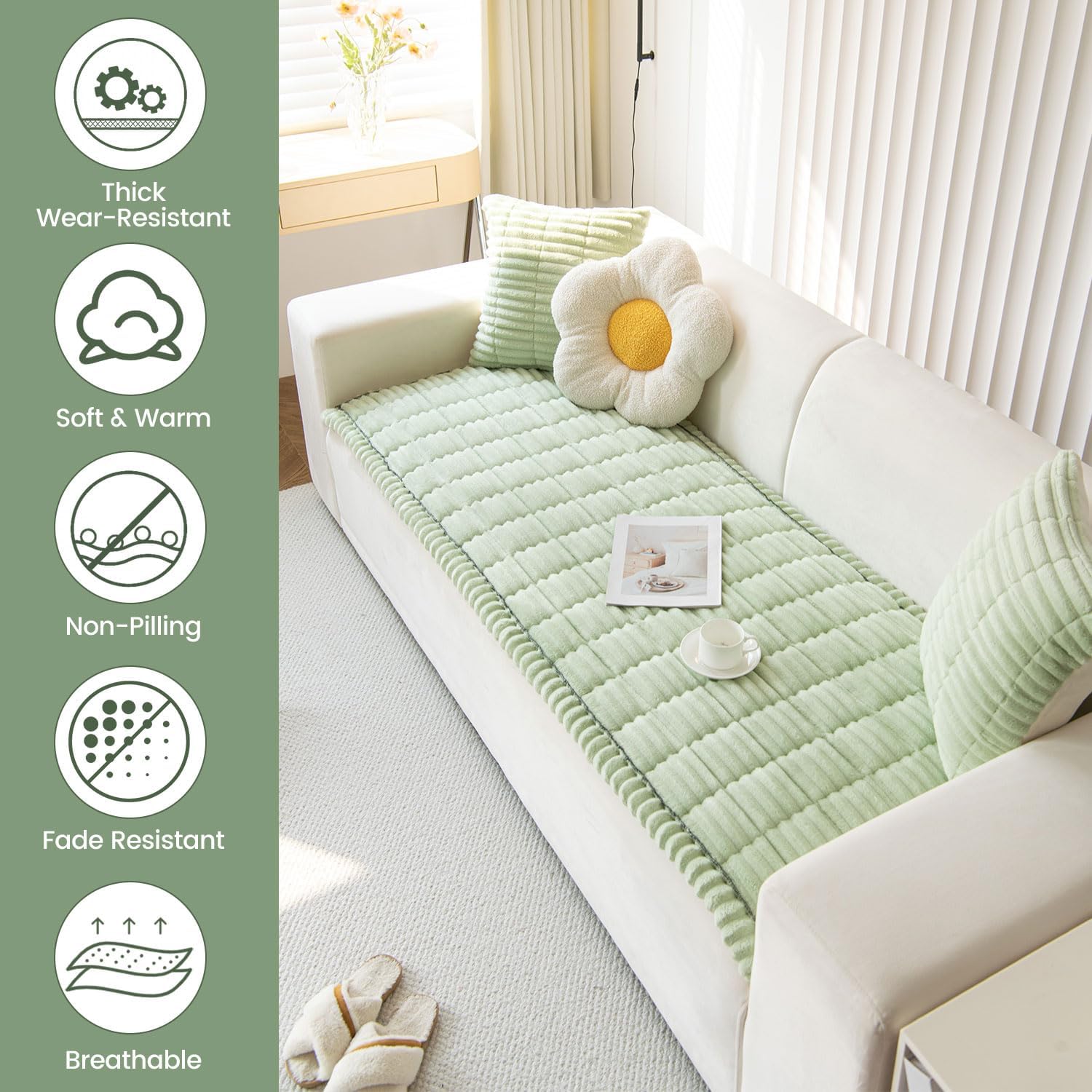 OTOB Dog Couch Covers for 3 Cushion Washable Non Slip Plush Pet Friendly Bed Mat Sofa Cover for Dogs, All Seasons Cozy Soft Fuzzy Furniture Protector Sofa Slipcovers (Matcha Green, 27.6" x 59.1")