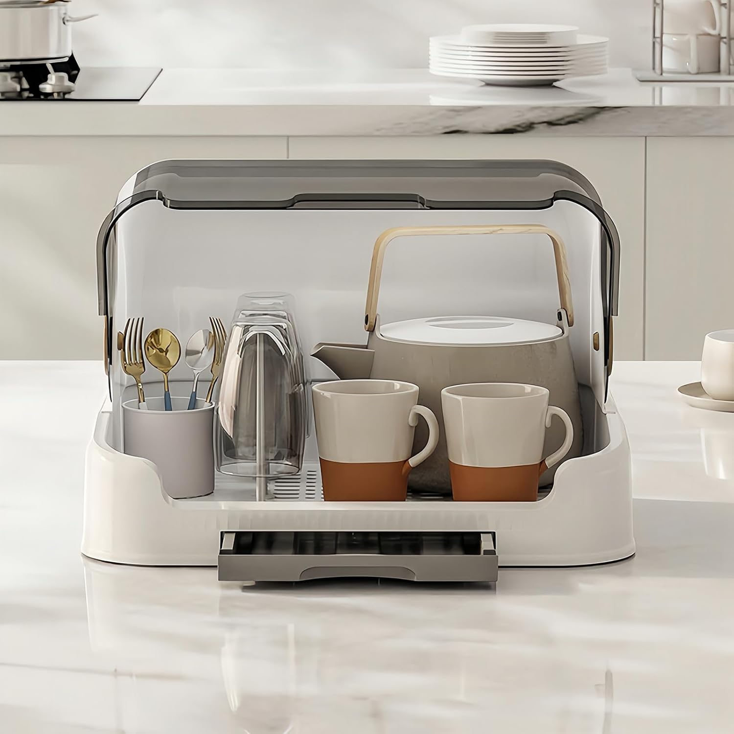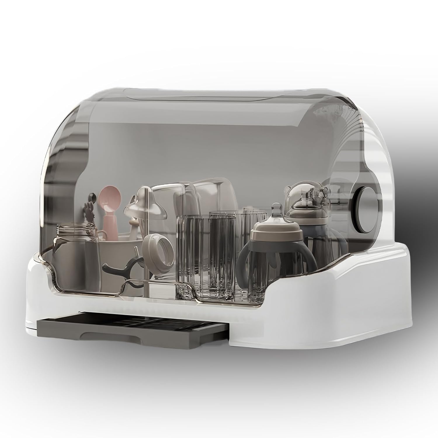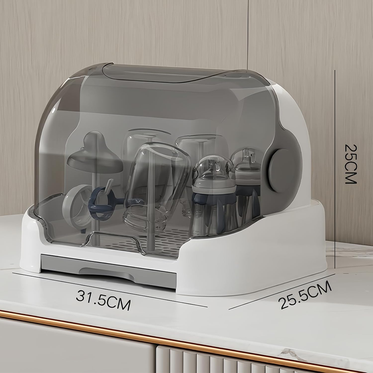 Baby Bottle Drying Rack Storage, Nursing Bottle Storage Box Organizer with Cover, Portable Kitchen Cabinet Organizer, Durable countertop Dryer (Grey)