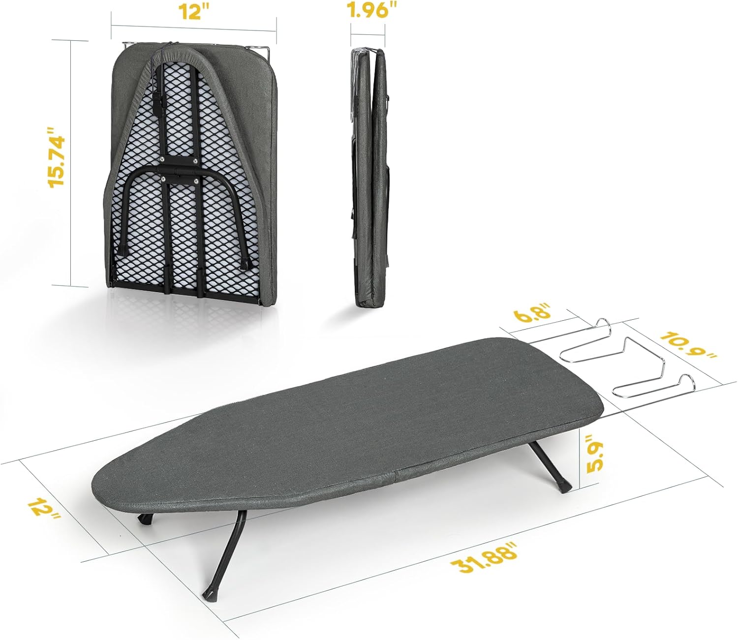 Small Ironing Board Tabletop, RAINHOL Compact Portable Iron Board Foldable with Cover and Pad, Countertop Mini Ironing Table for Travel and Space Saving, 31"x12", Black