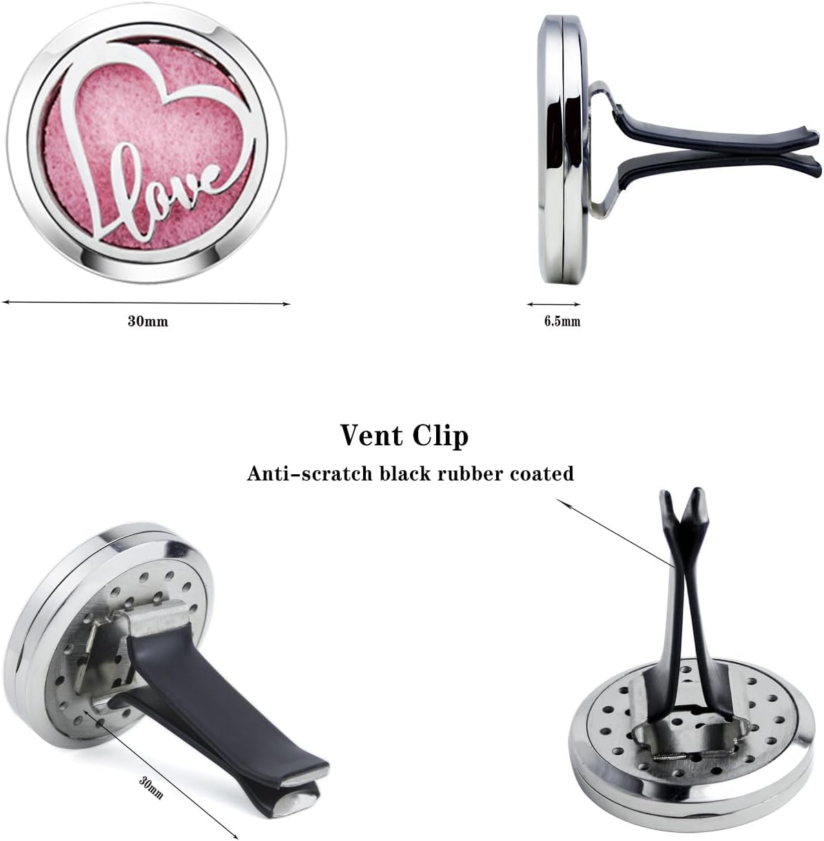 - 【Material 】High quality 316L stainless steel 30mm car diffuser vent clip, solid and smooth, anti-corrosion, easy to clean, we pair our diffuser car vent with reusable 10 color refill pads. Complete with a solid back and two magnets for a secure close, you’ll never have to worry about getting essential Oil all over your car.