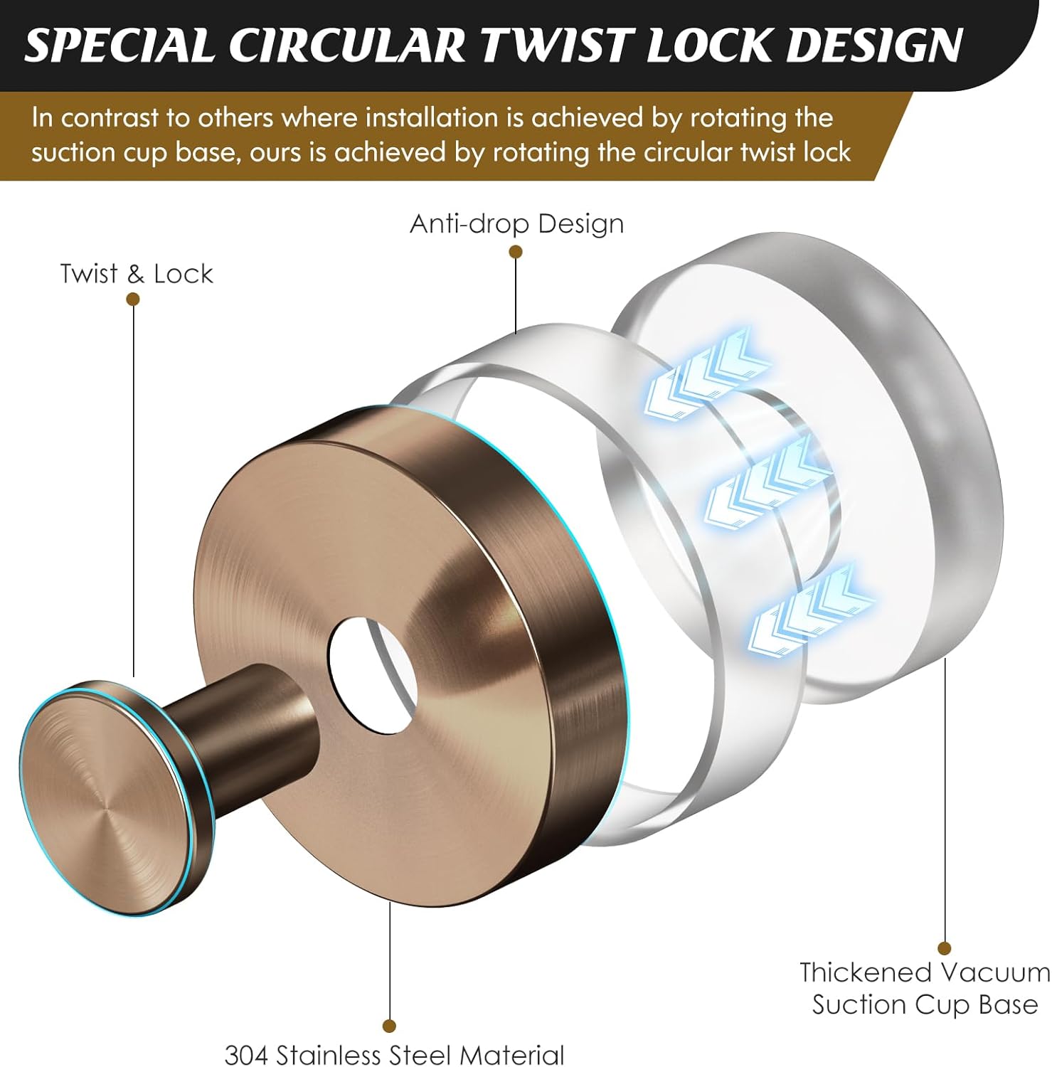 Suction Cup Hooks for Shower,4Pcs Shower Towel Suction Hooks,No Drill Towel Hooks for Bathroom Wall,Kitchen,Glass,Mirror,Tile to Hang Towels,Robes,Loofah-Champagne Bronze