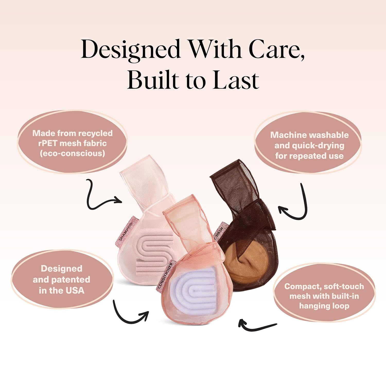 - REDUCE PLASTIC WASTE WITH BOTTLE-FREE BEAUTY – Replace single-use bottles with our sustainable soap saver bag and bar soap holder for shower. Perfect for body wash bars, shampoo bars, and conditioner bars, this eco-friendly option helps reduce plastic waste while keeping your routine stylish and efficient.