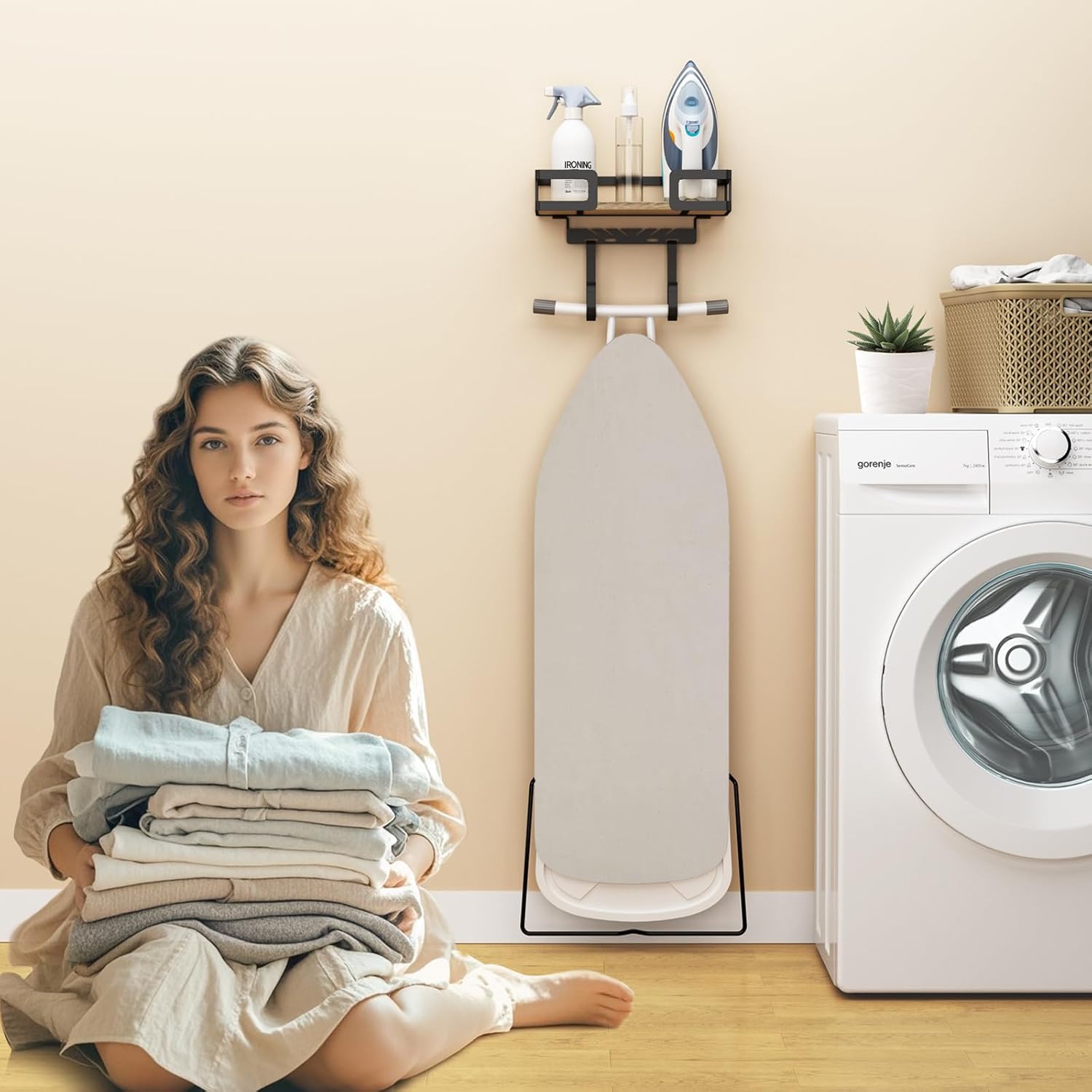 - MULTIFUNCTIONAL HOME ORGANIZER: This living room decor wall ironing board hanger wall mount is not only suitable for laundry room to store ironing accessories, but also for utility room, sewing room, bathroom, living room or entryway, etc. to keep your home organized.Great for laundry room decor.