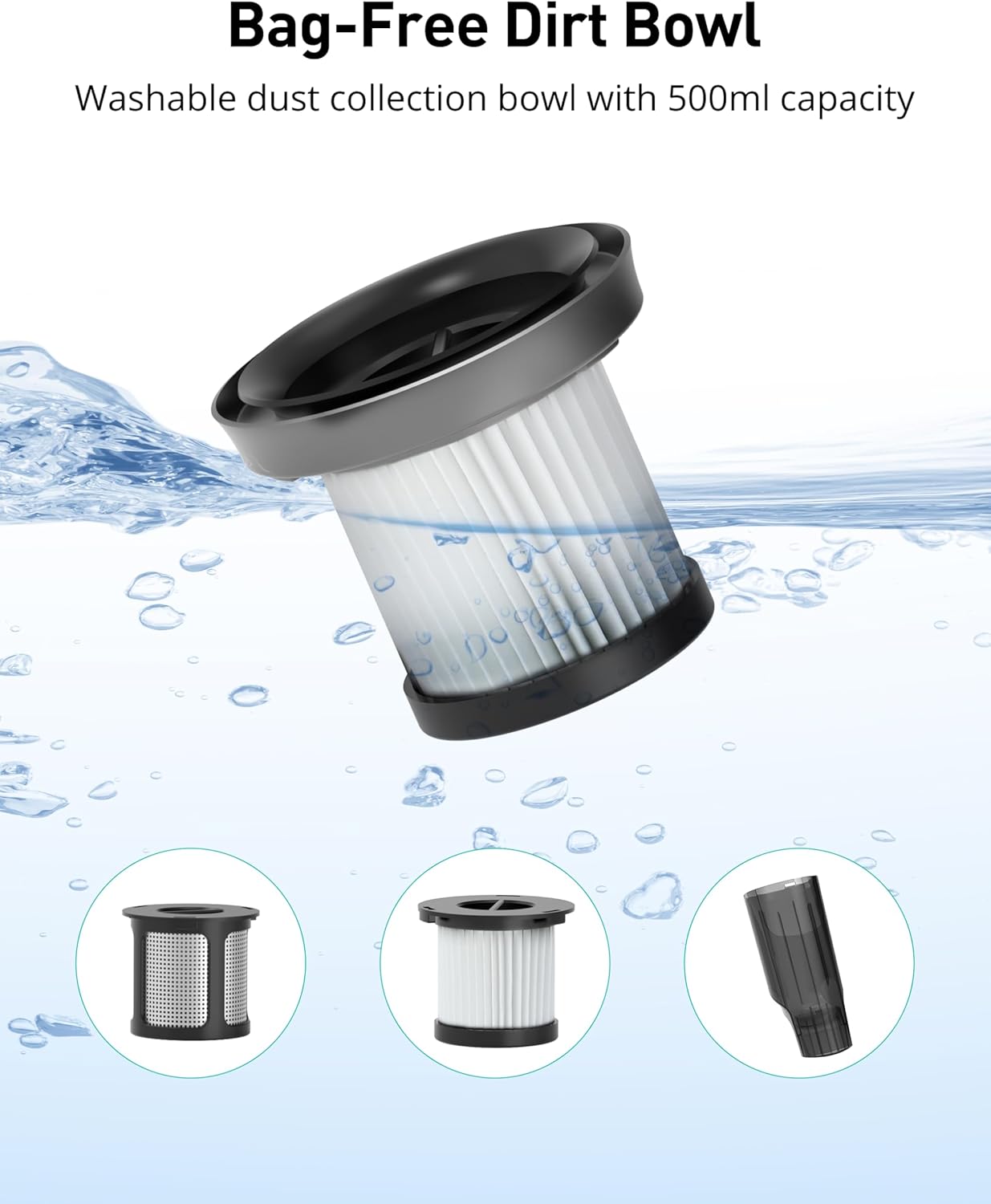 - ăQuick Solution To All Worriesă The 500ml dust collection container offers ample space for debris, while the detachable filter allows for easy cleaning, ensuring optimal performance and longevity of the cordless vacuum, Replacement Filter: B0DLBQPKTN