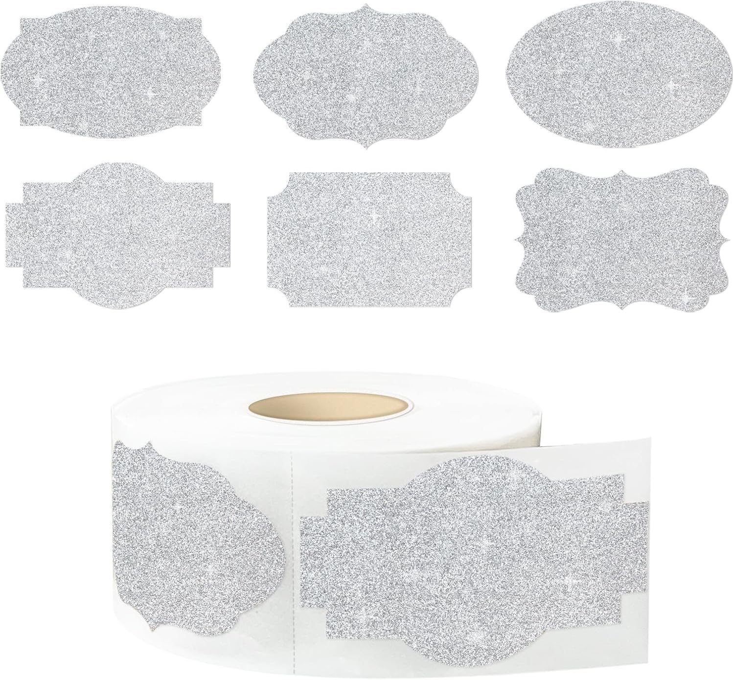 350 PCS Gift Tags Stickers Name Labels Stickers,2" x 1.2" Fancy Shape Stickers Self-Adhesive Handmade Bottle All-Purpose Jar Labels for Presents Cosmetic Decoration Jars Food Craft (Bright Silver)