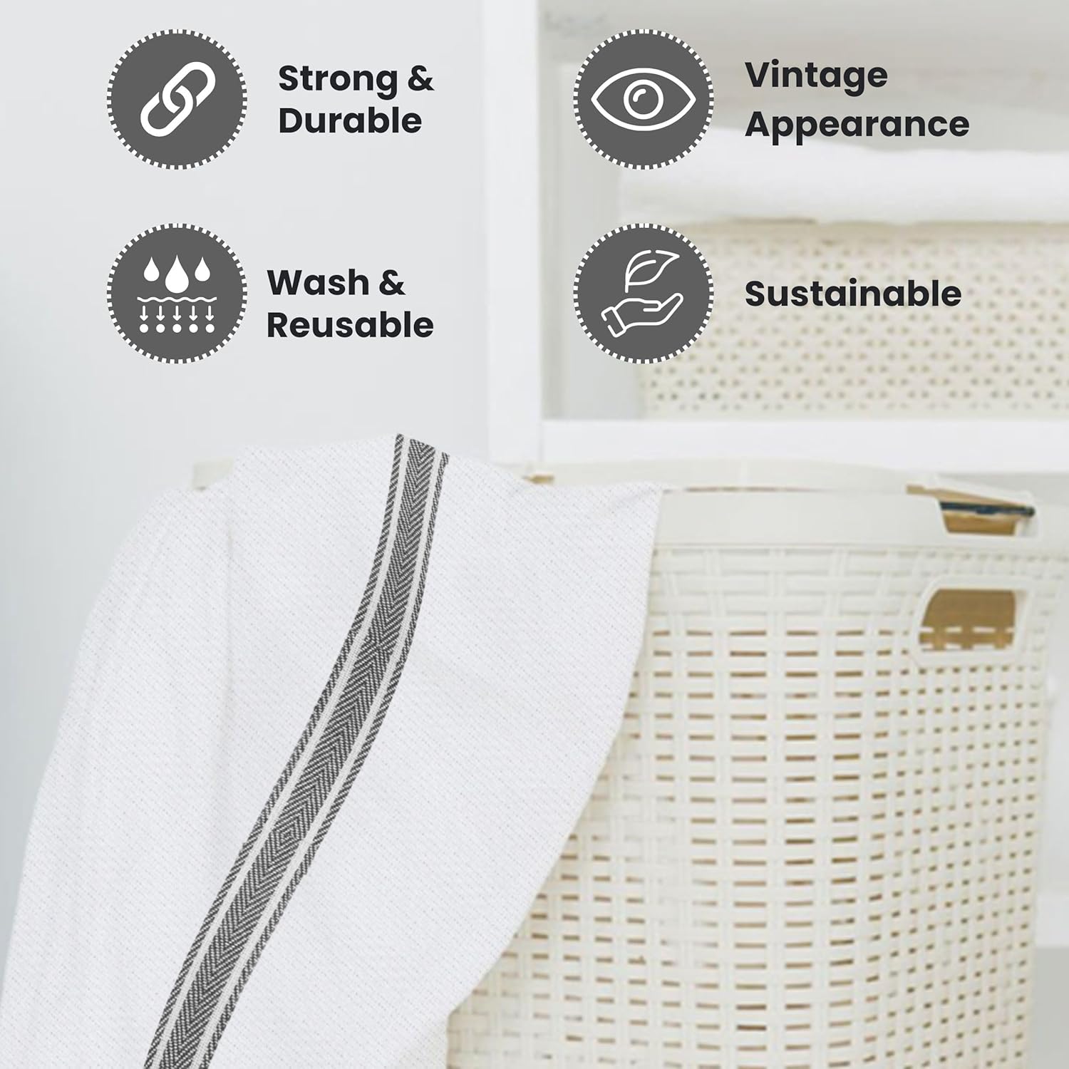 - Premium 100% Ring Spun Cotton: Crafted with soft and durable 100% ring spun cotton, these kitchen towels deliver exceptional absorbency and strength for daily kitchen tasks.