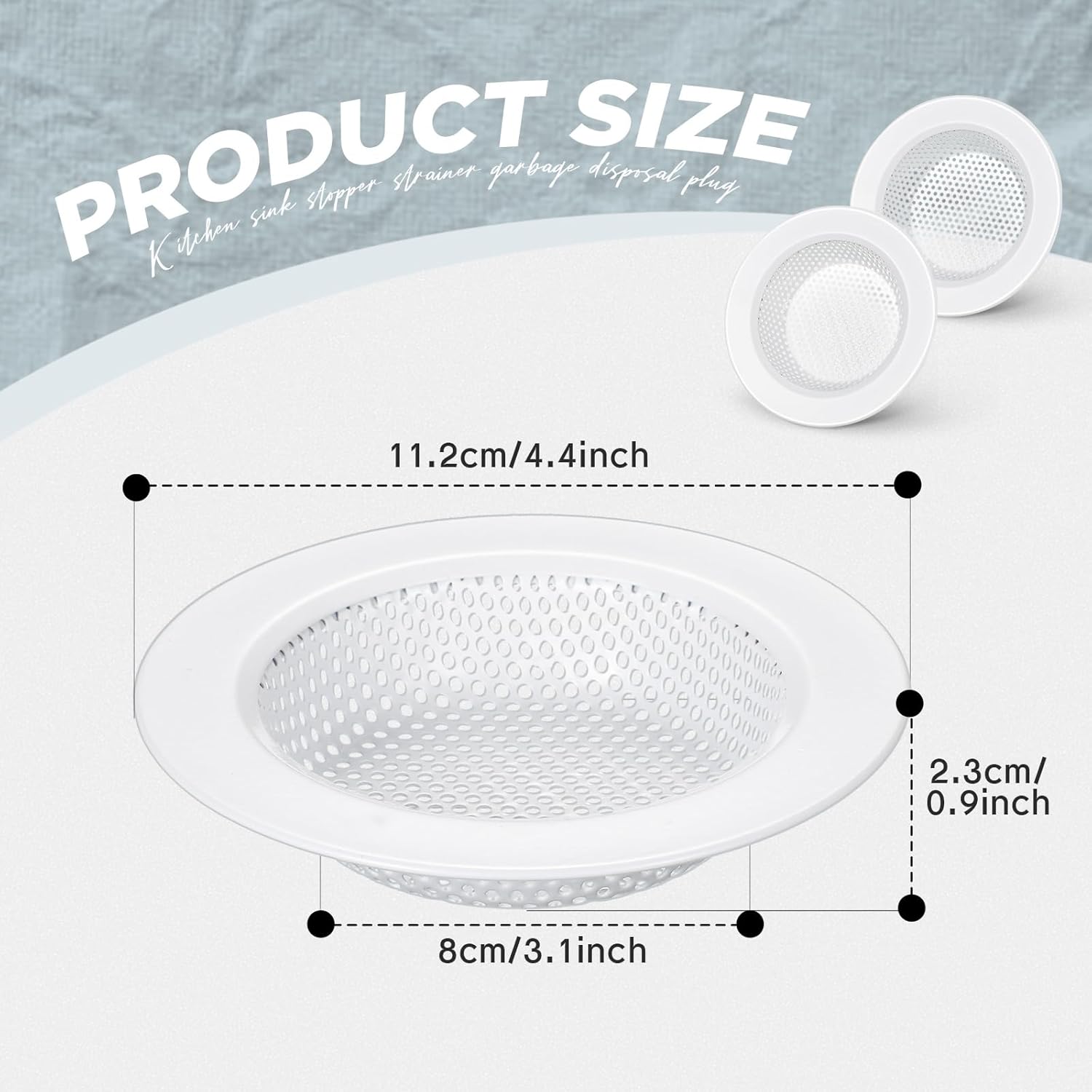 Retisee 2 Pcs Sink Strainer Stainless Steel Kitchen Sink Drain Strainer Basket Cover Mesh Hair Food Catcher, Large Wide Rim of 4.4 Diameter(Porcelain White)