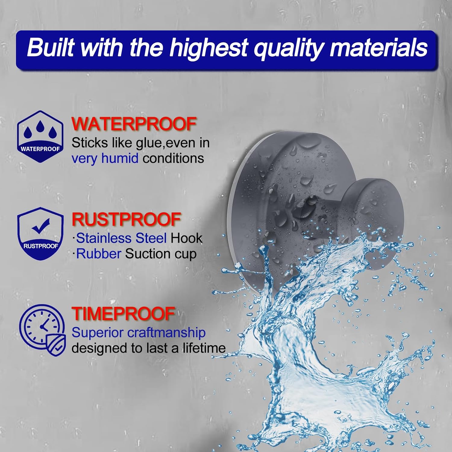 - [High-Quality Material]: The towel hooks are made of high-quality stainless steel, while the suction cup is made of a super sticky silicone base (Washing the suction bottom can be used repeatedly). They are rustproof, waterproof, and easy to clean with just a damp cloth