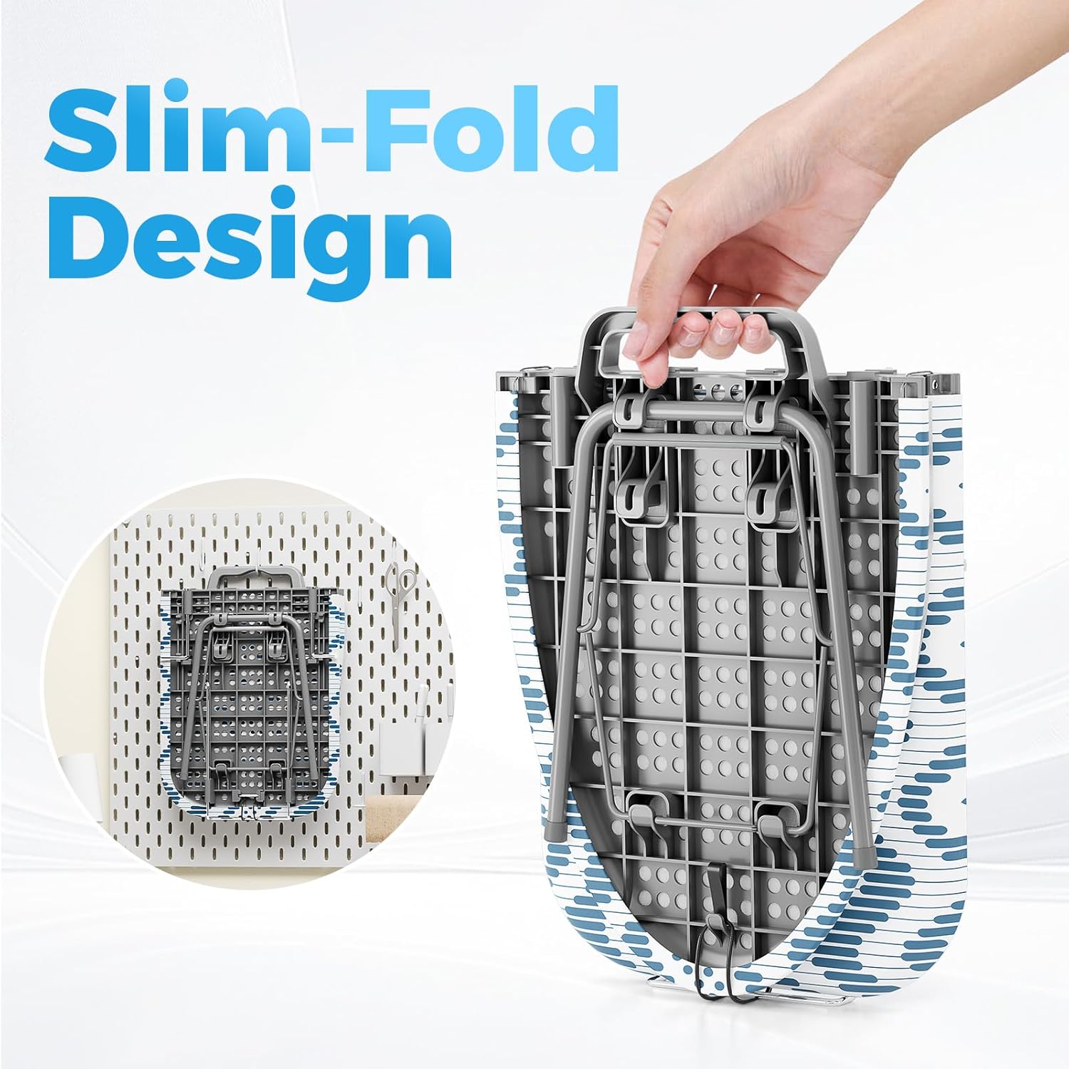 - Breathable Panel & Iron Rest: Mesh design make this small iron board dissipates heat quickly, allowing you to easily achieve a smooth and flat ironing effect. Ironing rack to give you space to put the iron, not easy to burn clothes. Simple lines and fresh color combinations, it is not only a practical household item but also a bright spot in home decoration