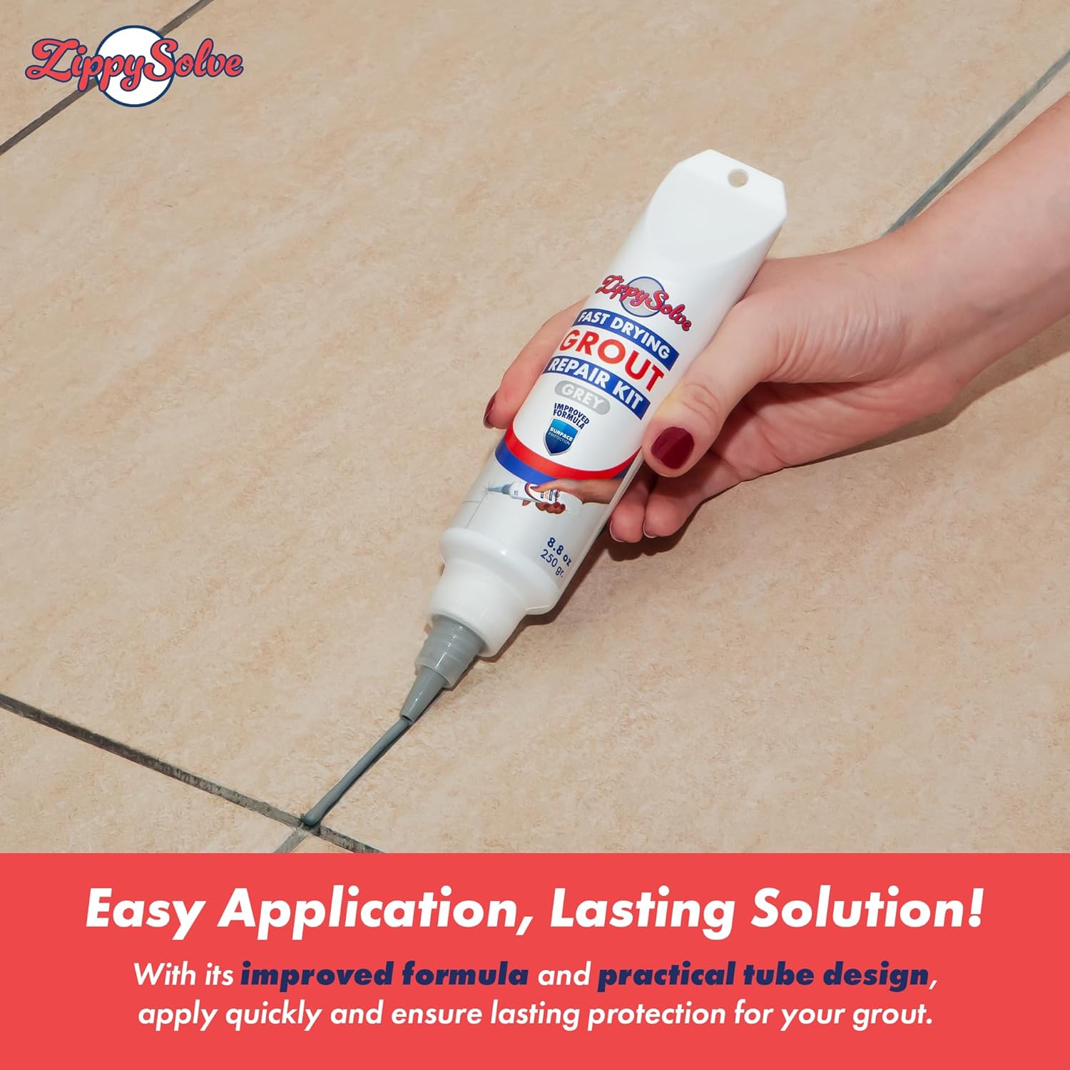 - ZippySolve's Unique Formula: ZippySolve's grout repair kit features a unique transition from squeezable caulk to real sanded grout when dried. Its water-based composition effectively prevents dark stains and spots and protects against grubby grout. Being eco-friendly, odorless, and non-toxic, it's safe for families and pets, allowing for a user-friendly experience without the need for gloves.