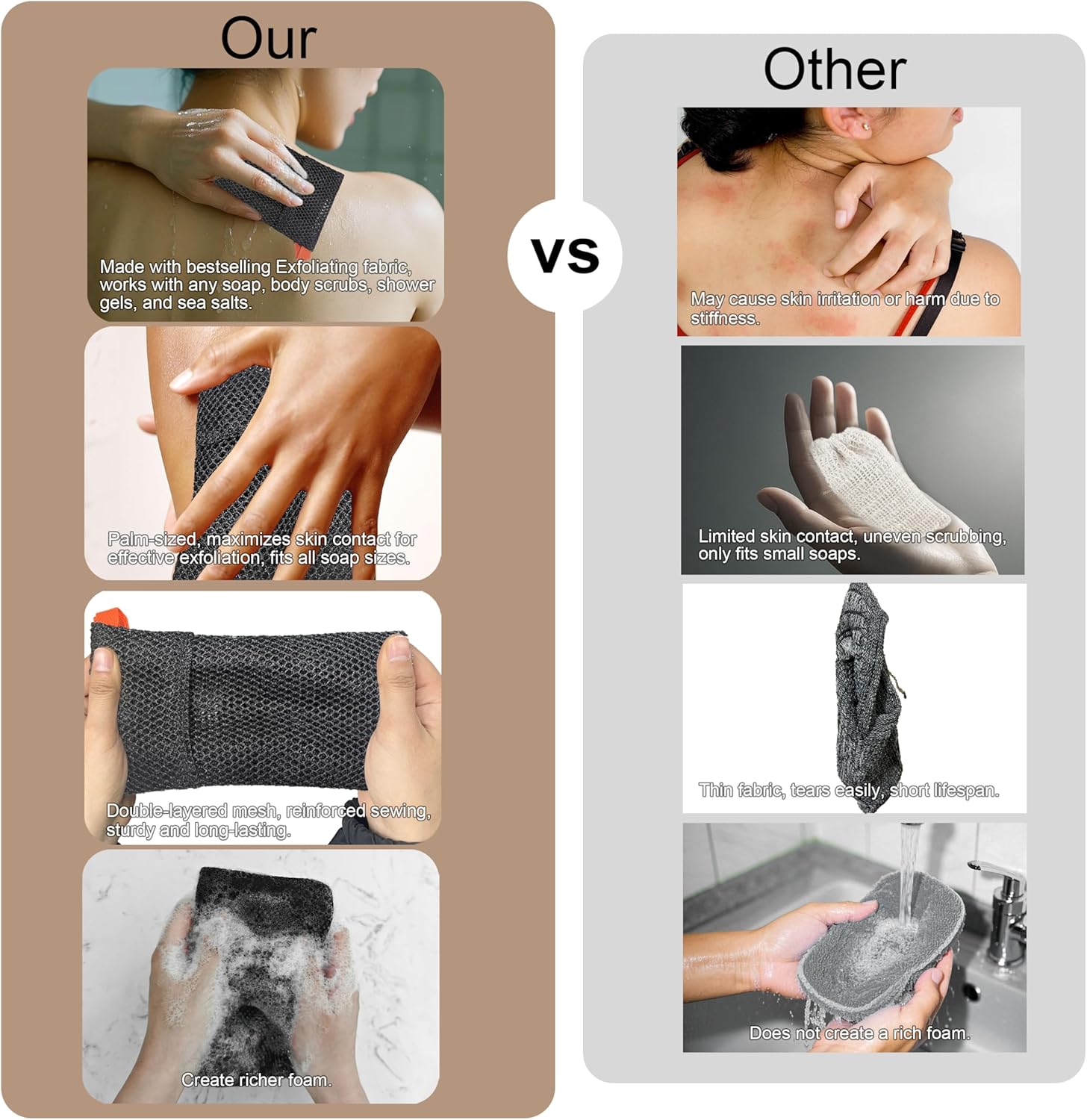 - Enhanced Exfoliation: Our soap bags transform your soap bar into a powerful exfoliating tool without harming your skin, removing dead skin and impurities for a refreshed, youthful appearance.