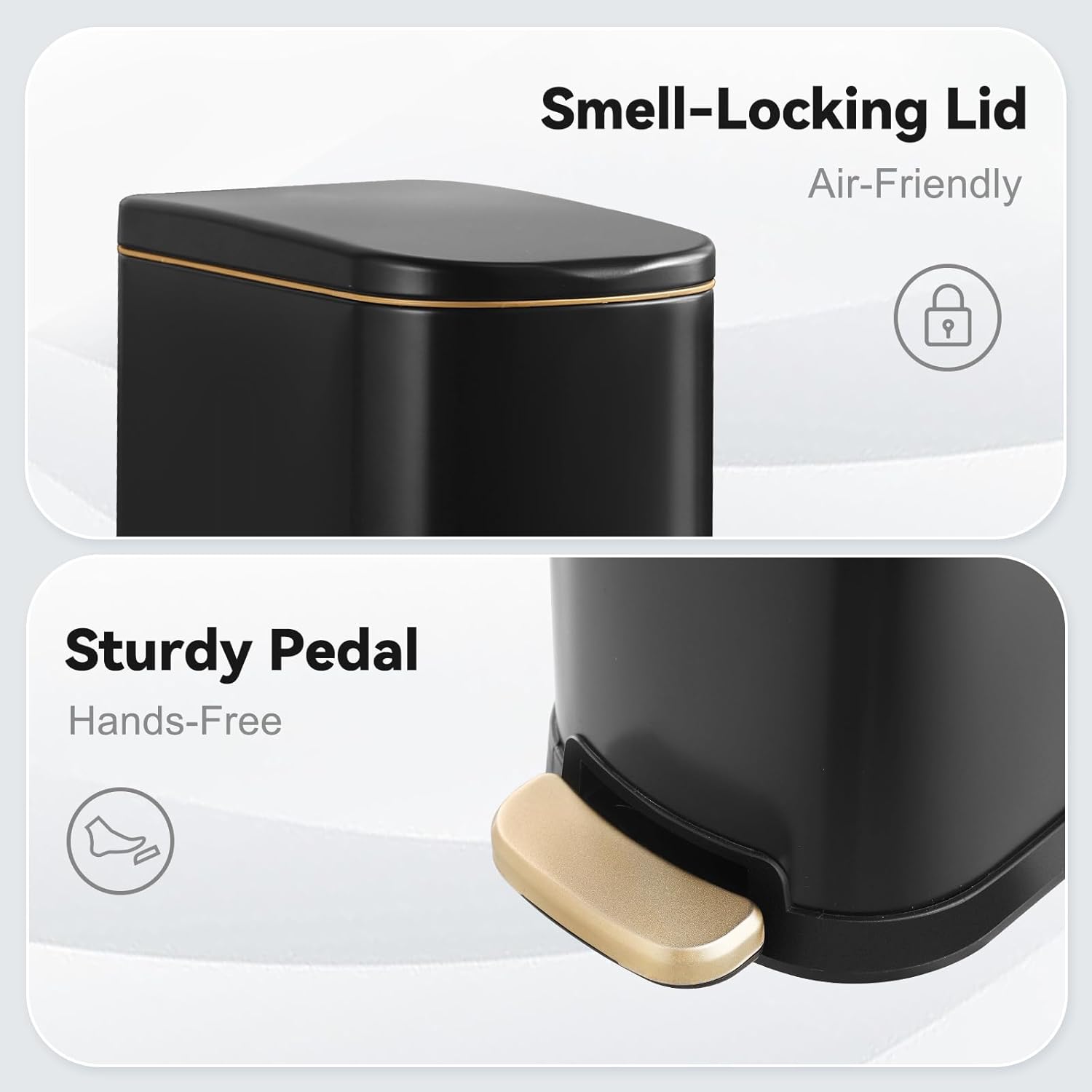 - Space-Saving Design: Despite its slim profile, this 3.5-gallon trash can provides sufficient space for everyday waste without taking up too much room. The compact design is perfect for tight areas such as bathrooms, kitchens, or offices, while its generous capacity reduces the need for constant emptying