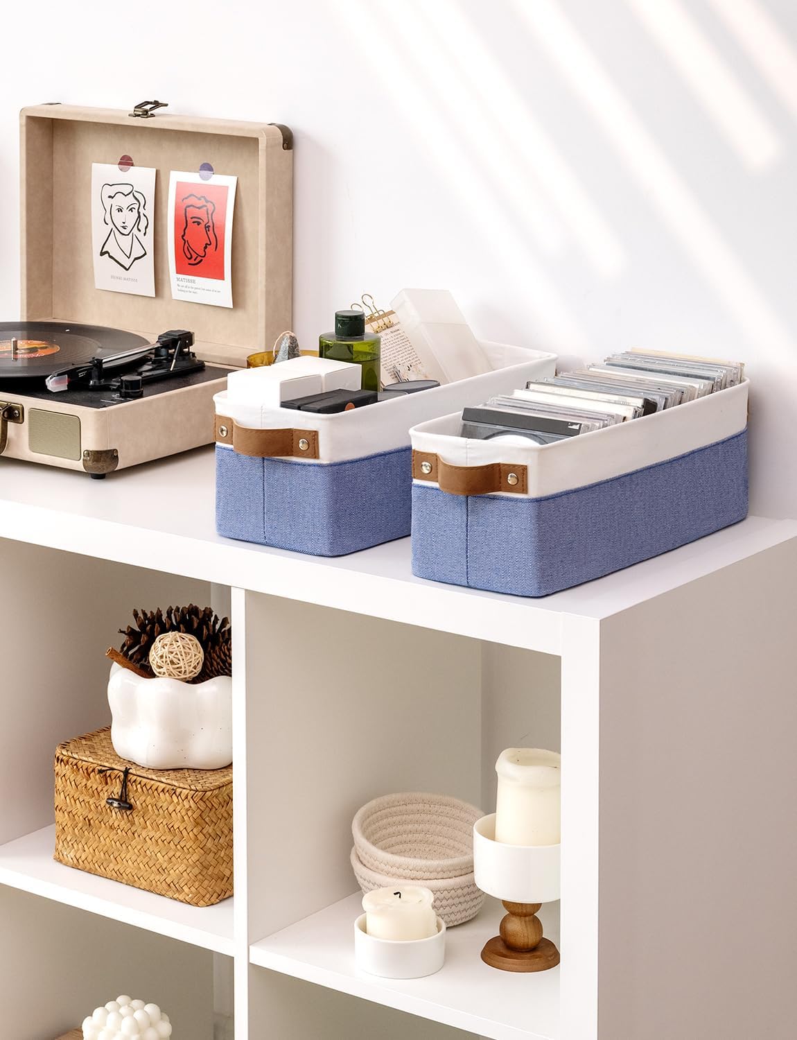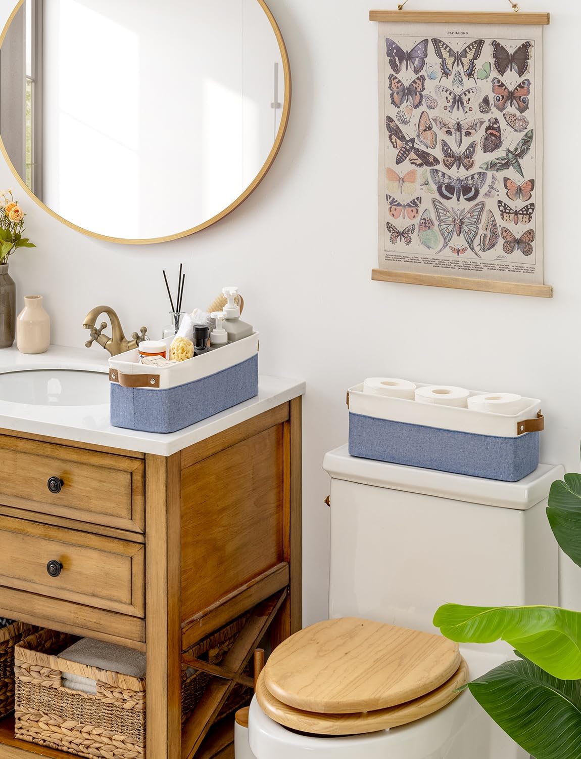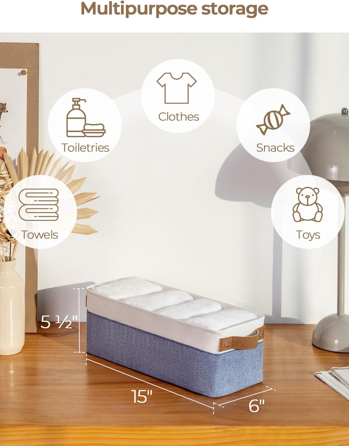 - Premium Materials: The storage basket is crafted from durable, thick fabric and features wide PU leather handles with rivet reinforcement, ensuring both strength and ease of movement to any desired location.