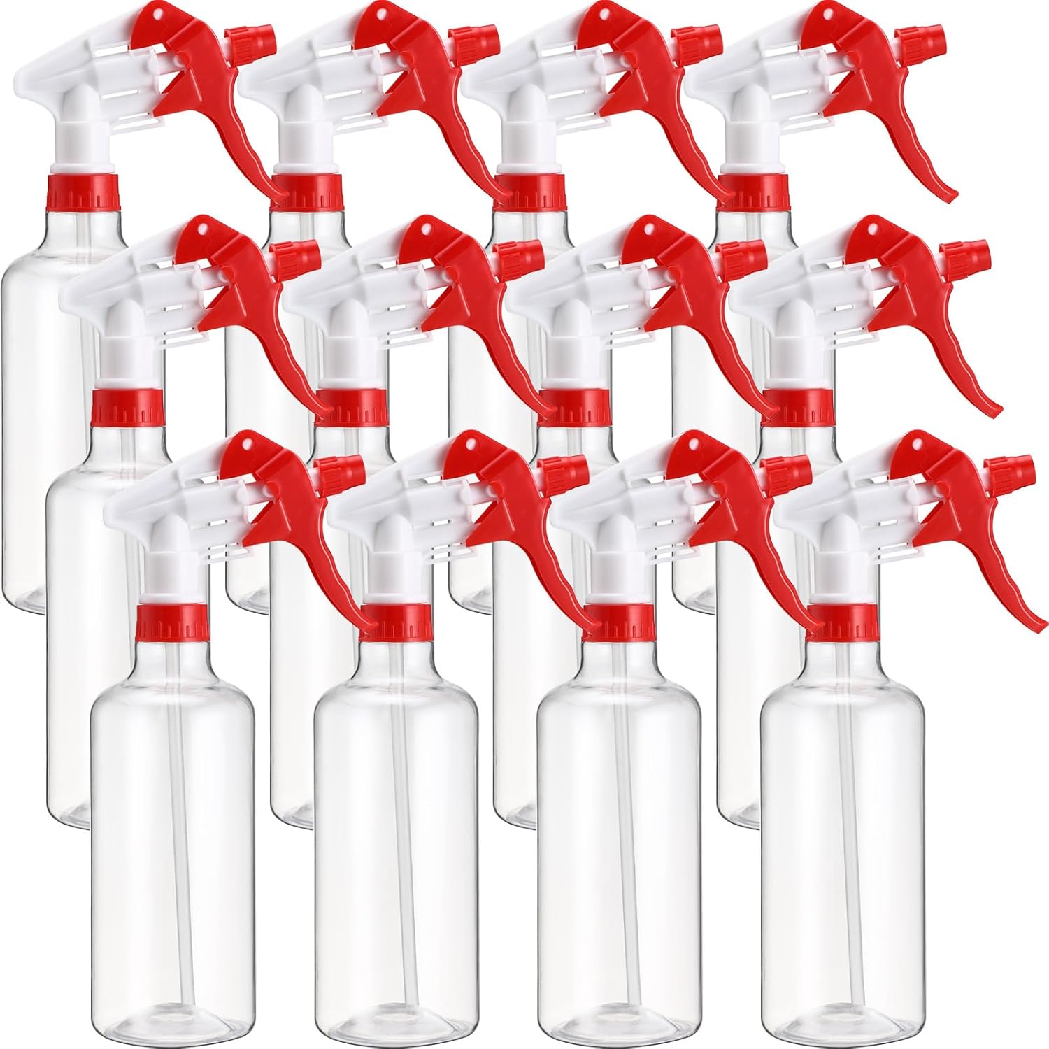 Eccliy 12 Pcs 16 Oz Plastic Spray Bottle, Adjustable Empty Reusable Sprayer for Cleaning, Planting, Water, Bathroom and Kitchen, BBQ, Commercial and Residential(Red,Clear)