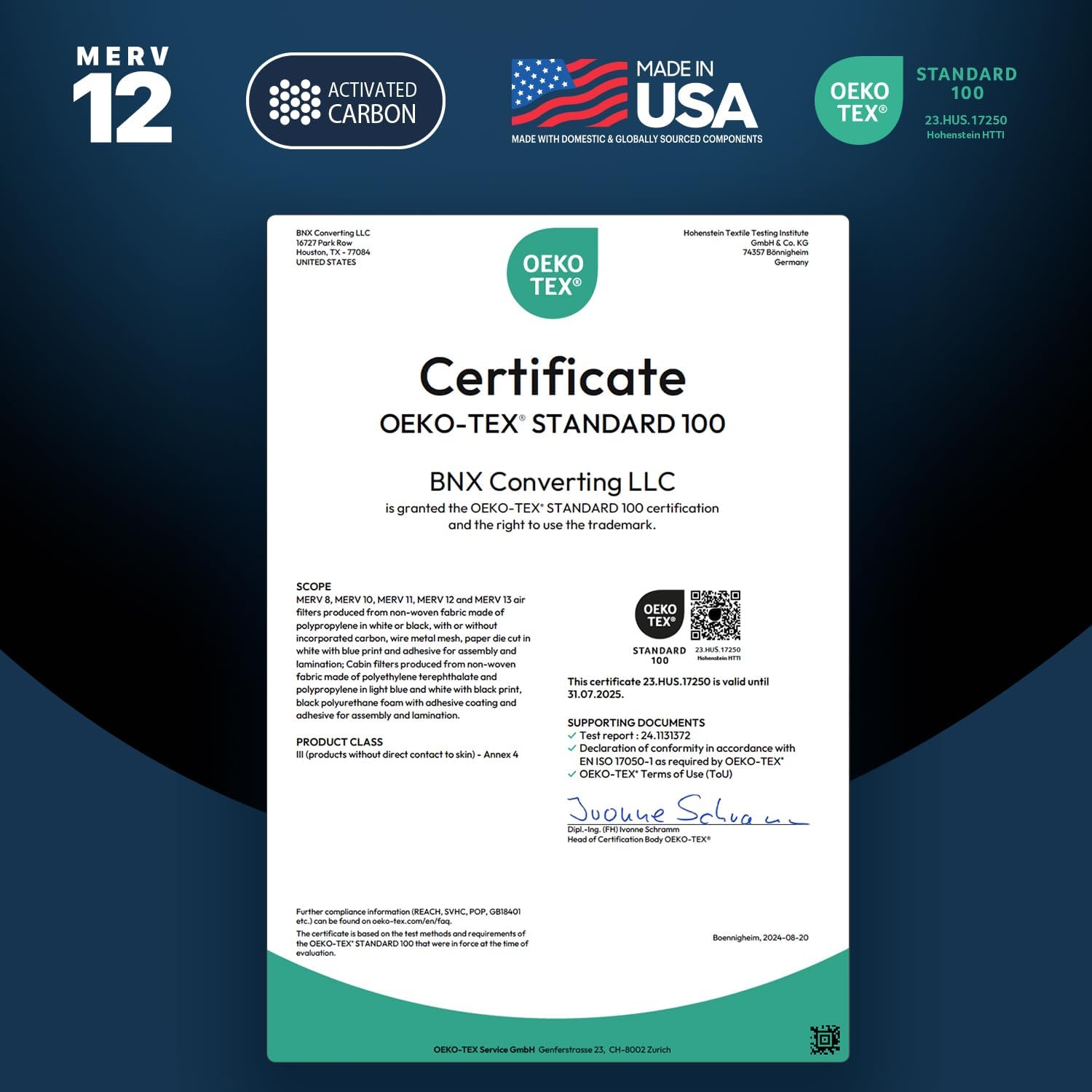 - MERV Rating : 12