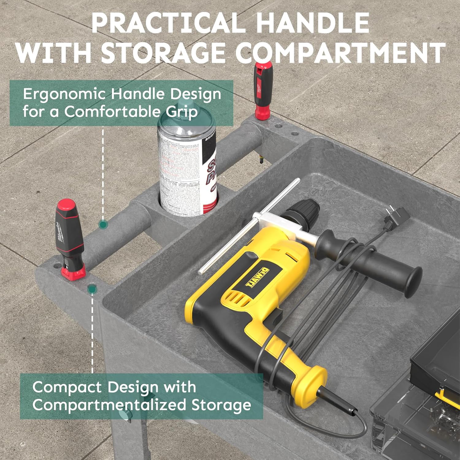 - 【Portable Design】Plastic utility service carts are equipped with ergonomic armrests that allow you to move with less effort and experience a comfortable grip. Modular storage compartments and small holes are designed to keep your tools handy and enhance your experience.