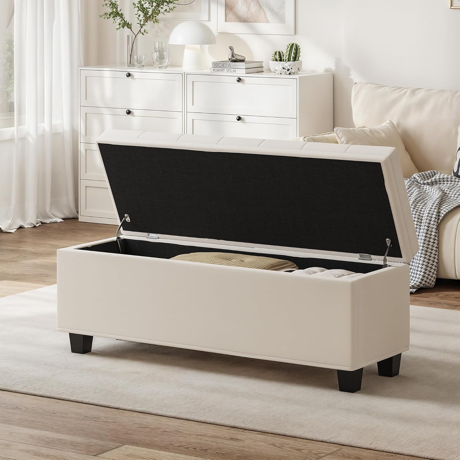 Maupvit Ottoman with Storage, Ottoman Bench with Lift Top, Upholstered Storage Bench with Hinged Lid, Bedroom Bench with Seating, Foot Rest Stool(Beige)