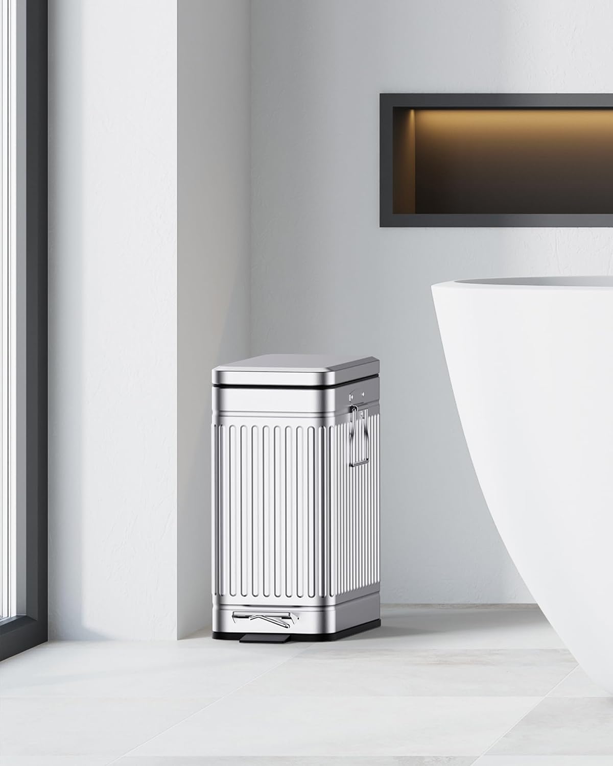- High Quality: The trash cans are made from stainless steel, rust and fingerprint-proof; The matte embossed finish results in a stylish and modern design for bathroom, bedroom, office, toilet, dorm