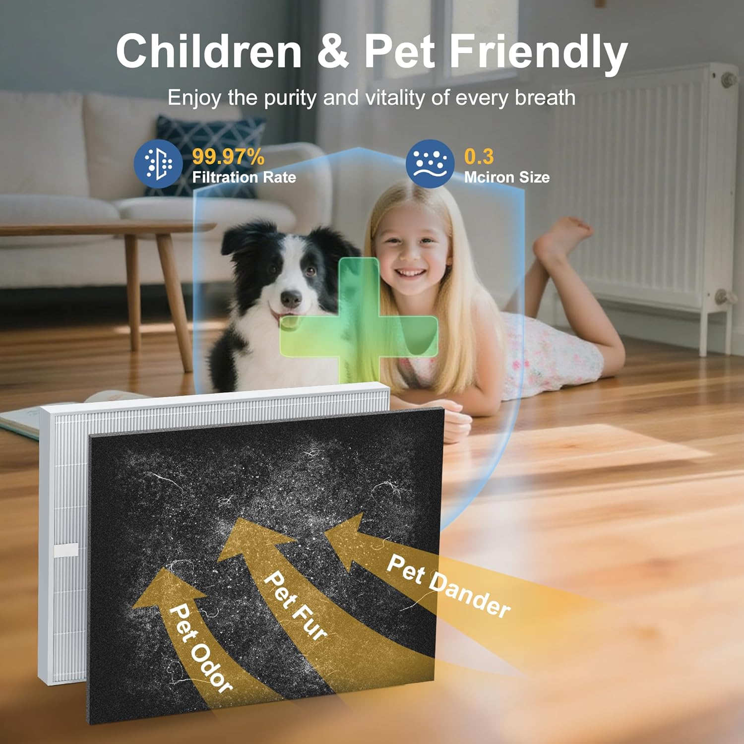 - ππ’π¦π§-ππππππ§ππ©π ππ’π’ππ¦ - Package includes 2 x HEPA Filter and 6 x Pre-Cut Carbon Filter. Fully meet your needs for the replacement of ap-1512hh filter set, with premium materials and advanced technology, smell less and safe to use, ideal solution for homes with pets, smokers, open layout kitchens. Long-lasting purification and care for your respiratory health