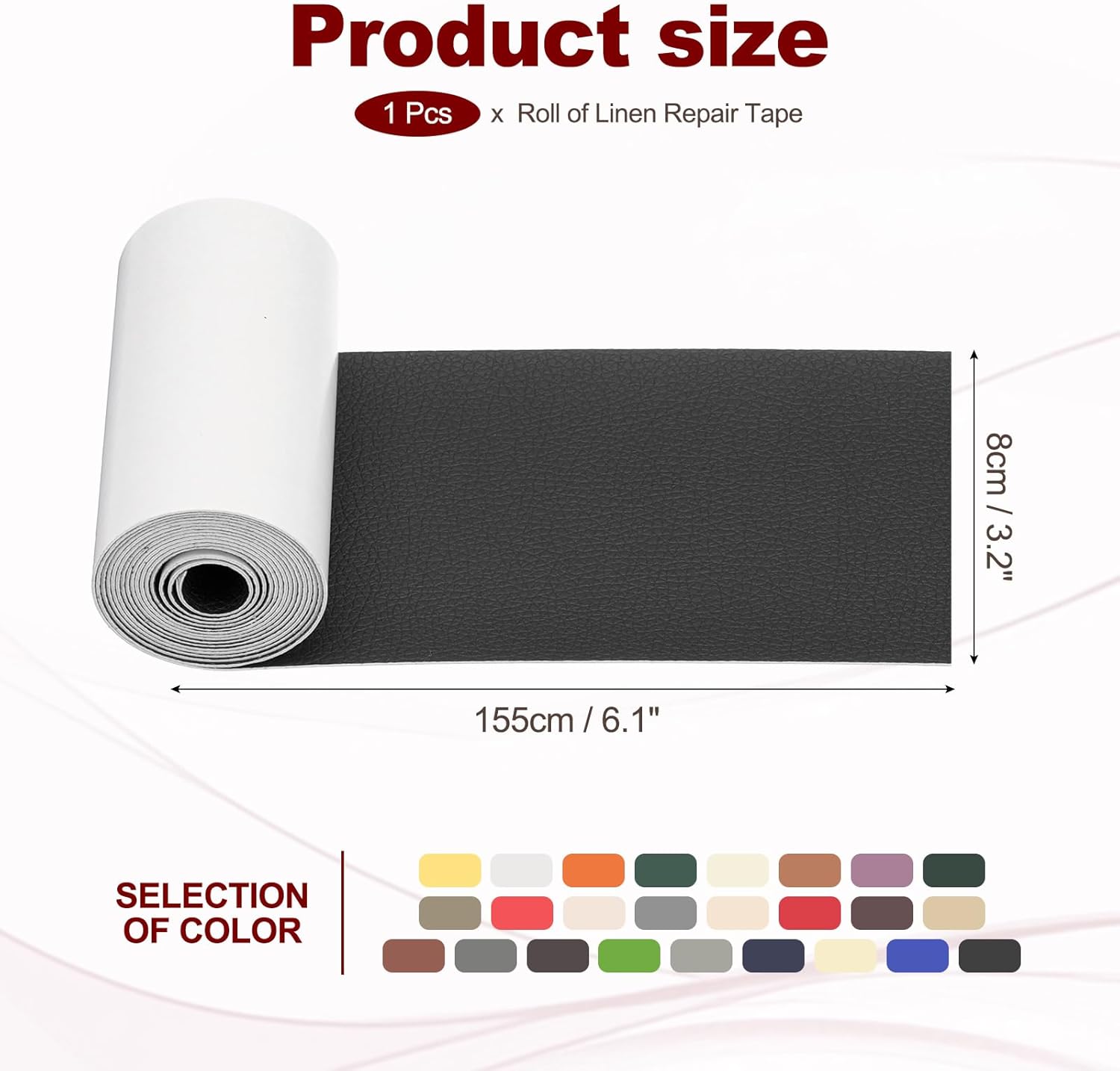 - Material: PVC Leather; Color: Black; Size: 8 x 155 cm / 3.2 x 61 inch; Package Included: Leather Patches x 1 Roll