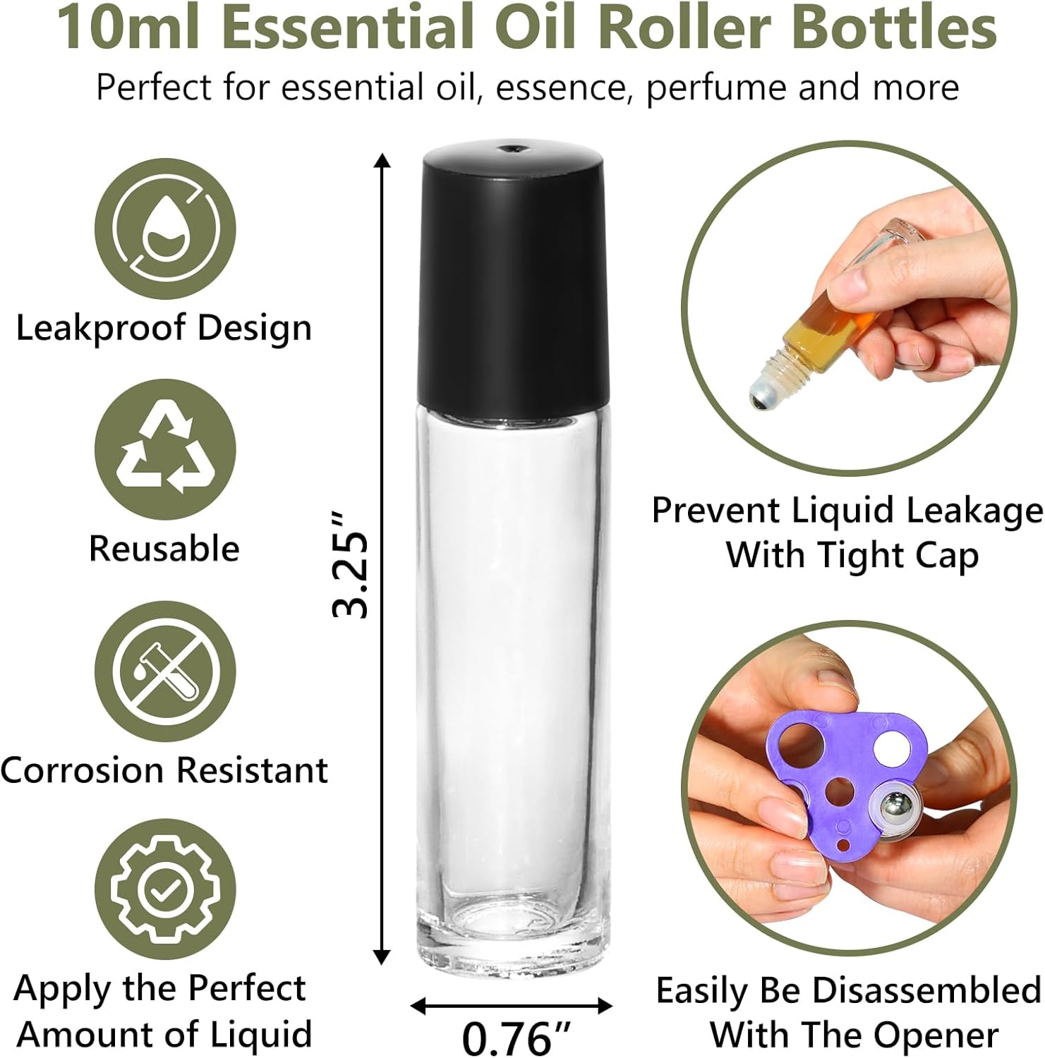 - High Quality: Made from premium transparent glass, these essential oil roller bottles feature a sleek, elegant design that allows you to easily see the contents. This makes tracking product levels simple and ensures your essential oils are visible and accessible.