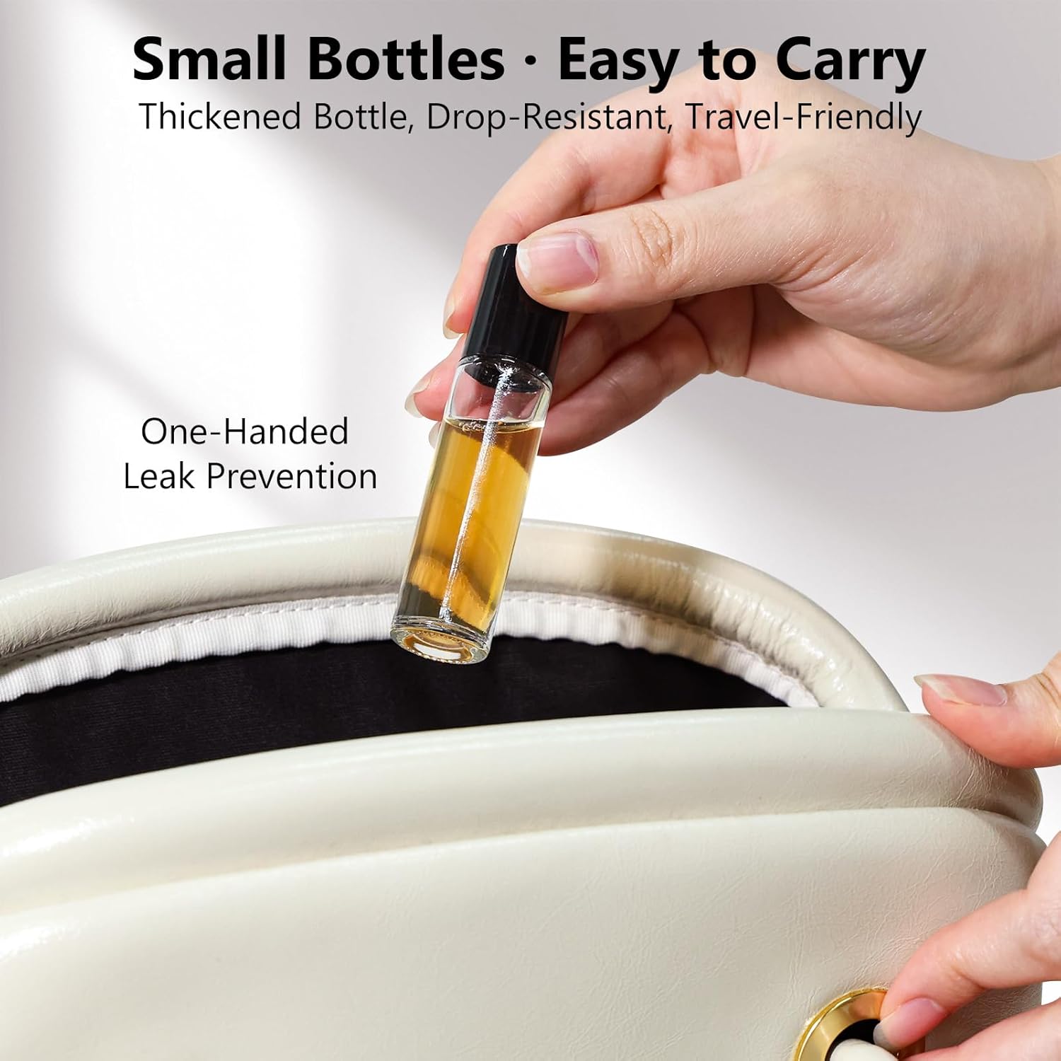 - Leakproof Protection: These roller bottles for essential oils feature a screw-thread finish and a secure black plastic cap for reliable, leak-proof performance. The dual-cap design keeps your oils and perfumes safely sealed, preventing spills and leaks during travel or everyday use.