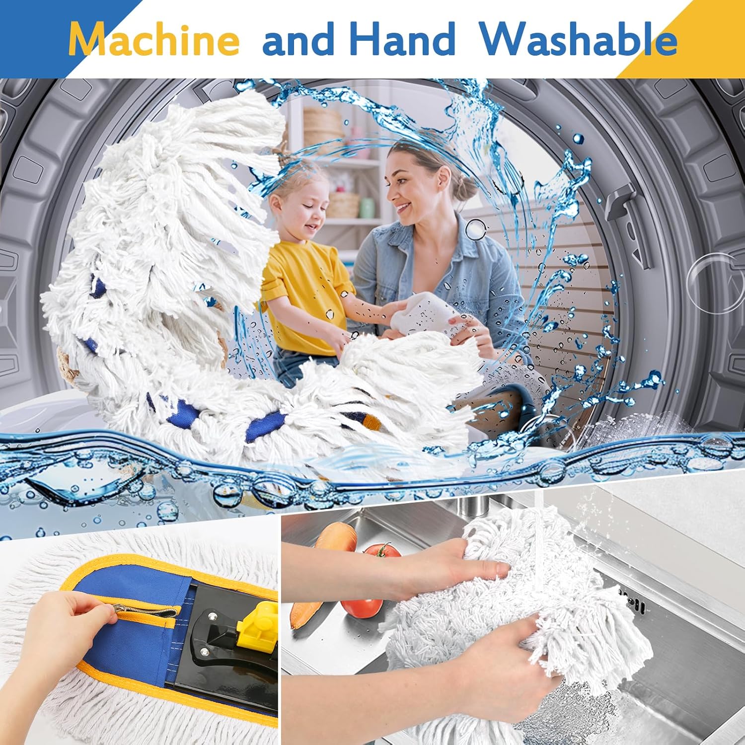 - 【2 Washable Cotton Mop Pads】Commercial mop includes two mop head,Be prepared for daily messes with extra mop refills. Assign each room in your home its own refill pads and avoid spreading dirt from one area to another. Mop pads is Machine washable or hand washable. More economical and environmentally friendly.