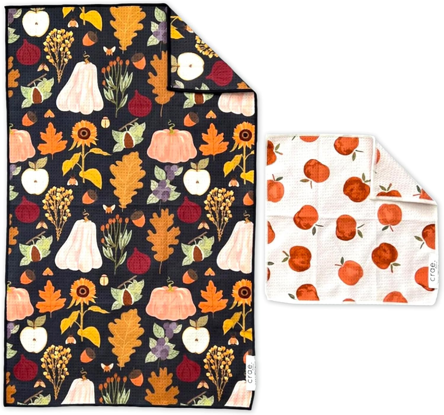 Microfiber Hand Towel & Washcloth Set of 2 - Double-Sided, Waffle Weave, Super Absorbent, Lint-Free, Fast Drying - Jonny & Gather Pattern for Bathroom, Kitchen, Car, and Window Cleaning